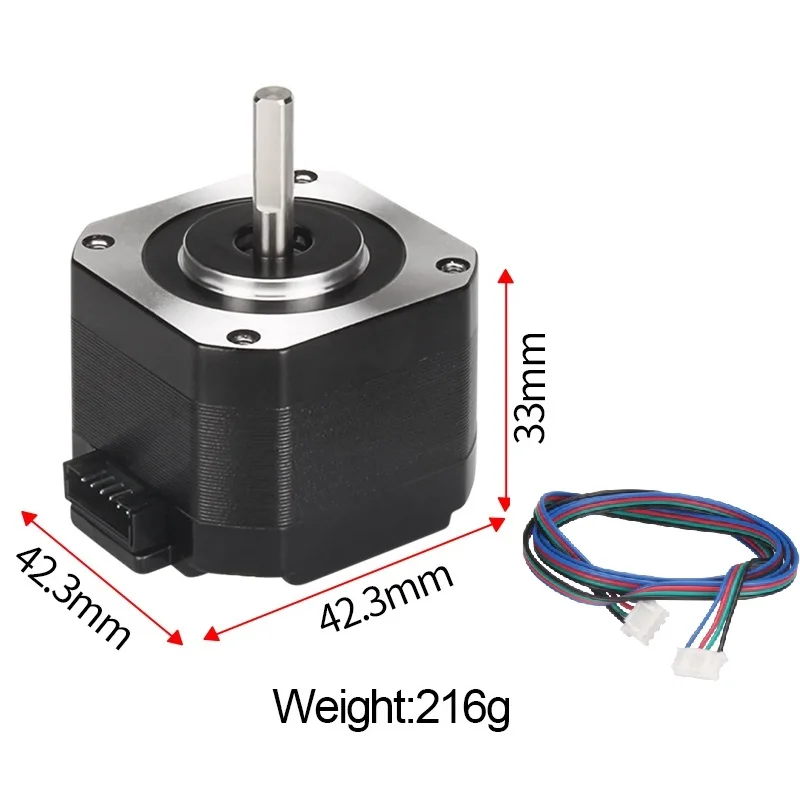 Посылка: 1 комплект экструдера и 42 шагового двигателя (с гаечными ключами)/1 комплект экструдера без двигателя (с гаечными ключами)Высота мотора: около 33 мм, как показано на фото, кабель провода мотора 800 мм Поставляется с этим мотором, как показано на следующем фото.