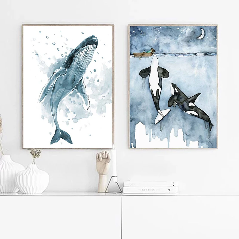 Акварельный постер с Китом, абстрактный постер с изображением животных, голубой океан, пейзаж, холст, настенные картины в скандинавском стиле, декор для гостиной icon star icon star icon star icon star icon star