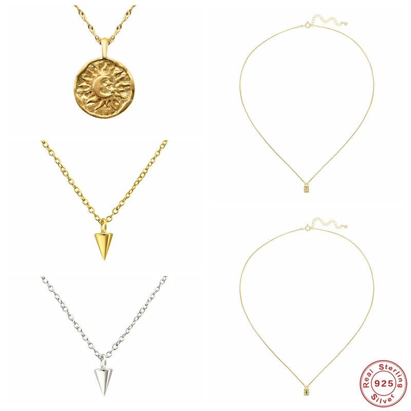 Помощник в винтажном стиле с изображением солнца, Луны Шарм небесные изысканные ожерелья для женщин подарок зелёный Циркон конус кулон по производсву серебрянных колье, ювелирные изделия