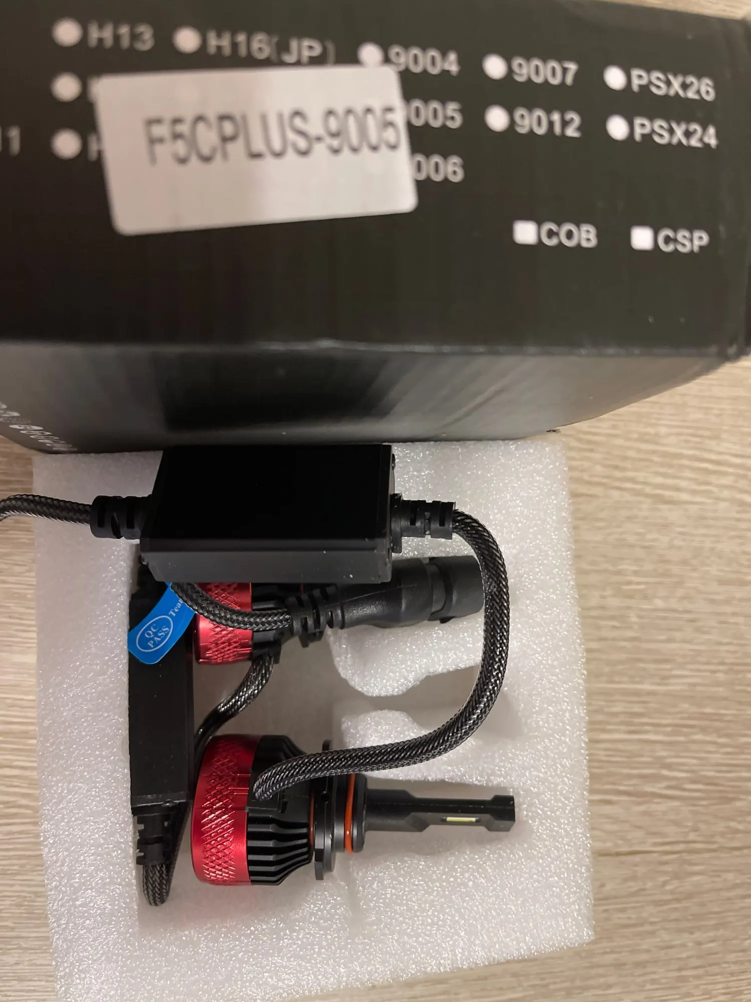 замовив 25.11.21, отримав у Львові 14.12.21 коробка прим'ята, якість коробки так собі, лампи і блоки цілі, що саме головне, світять яскраво, при 13.2В одна лампа споживає 2.82А, іньша 2.92, вентилятор на другій явно крутиться інтенсивніше, по відчуттях - гріється не сильно, після кількох хвилин роботи в руках тримаю нормально, чи то охолодження непогане, чи то лампи задавлені, брав f5c, то там споживання 3.6 - 3.8А, але і гріються дай боже...поставлю в машину і побачу, що краще