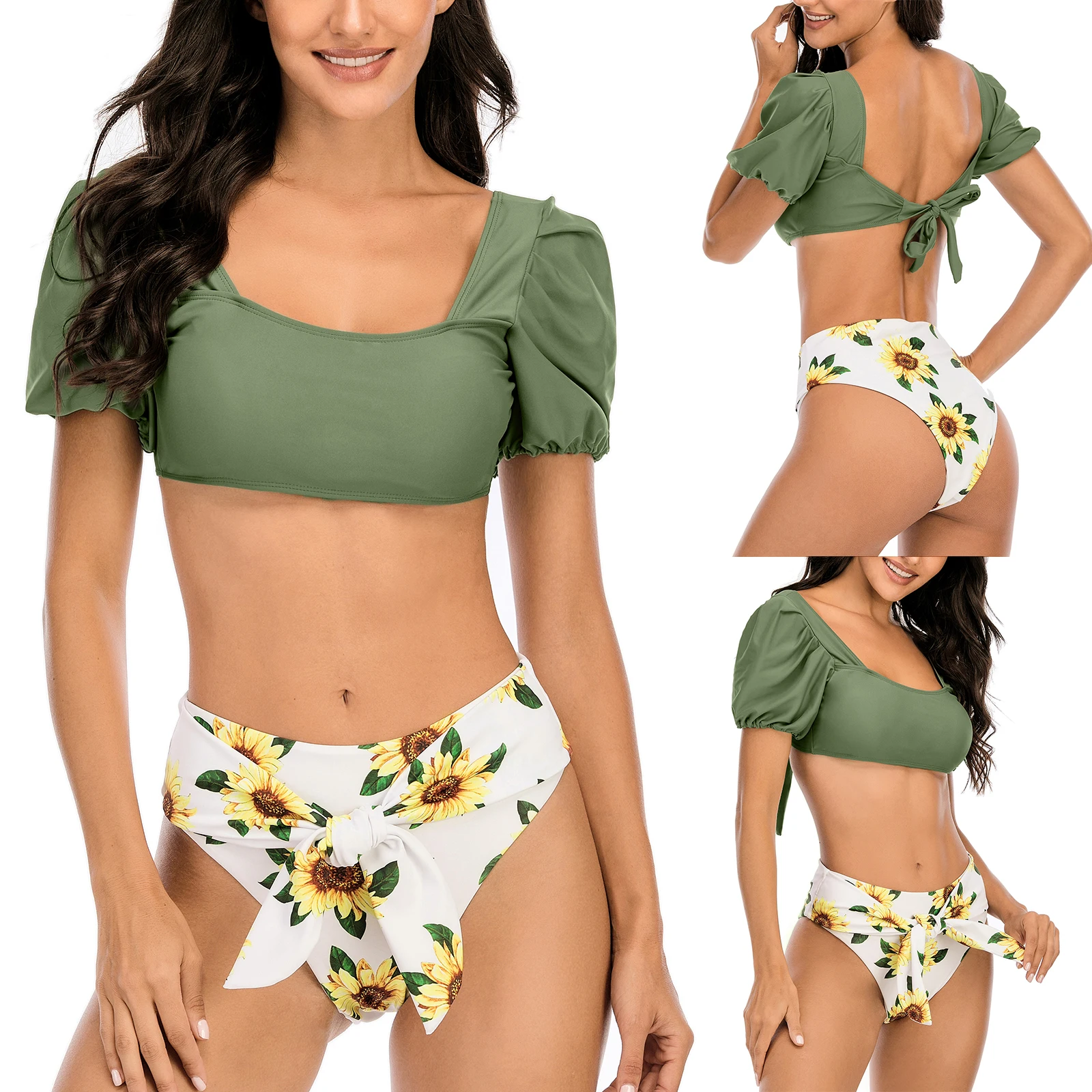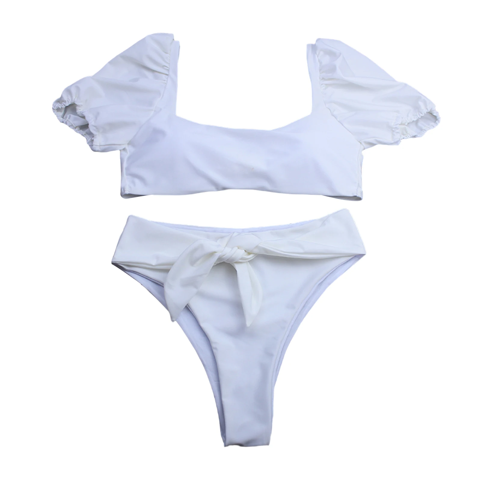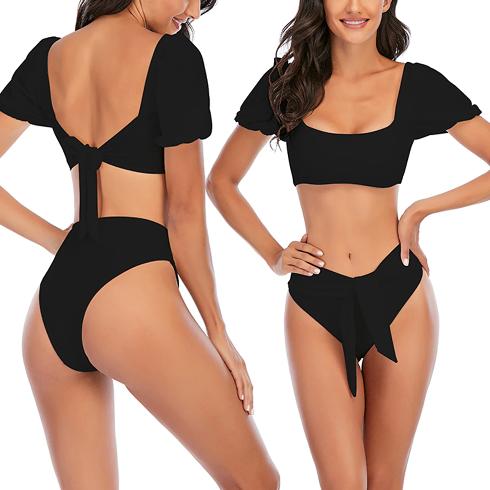 Купальники женские, раздельные, с пышными рукавами, на шнуровке