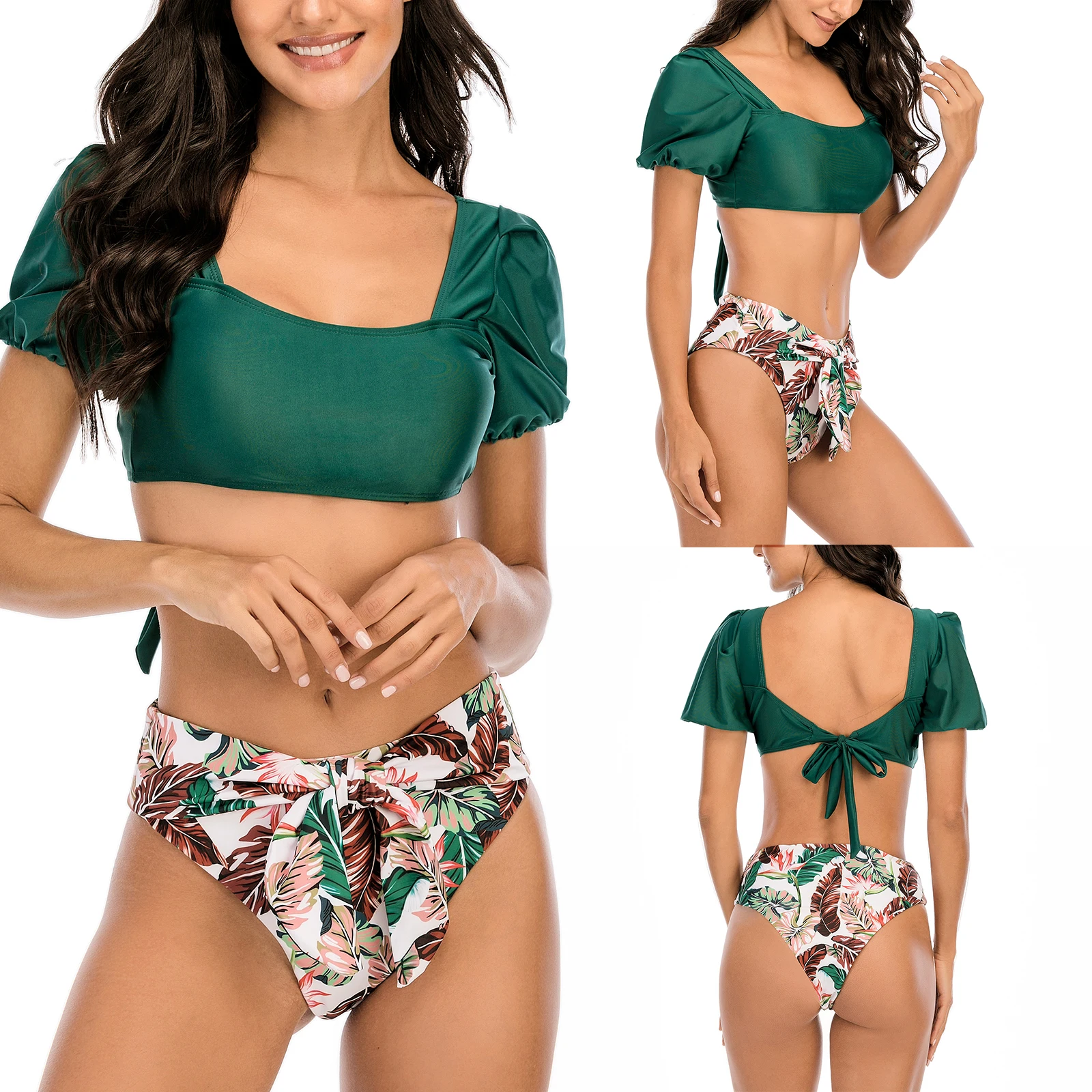 Сексуальное микро бикини с коротким рукавом, однотонный зеленый Лео...