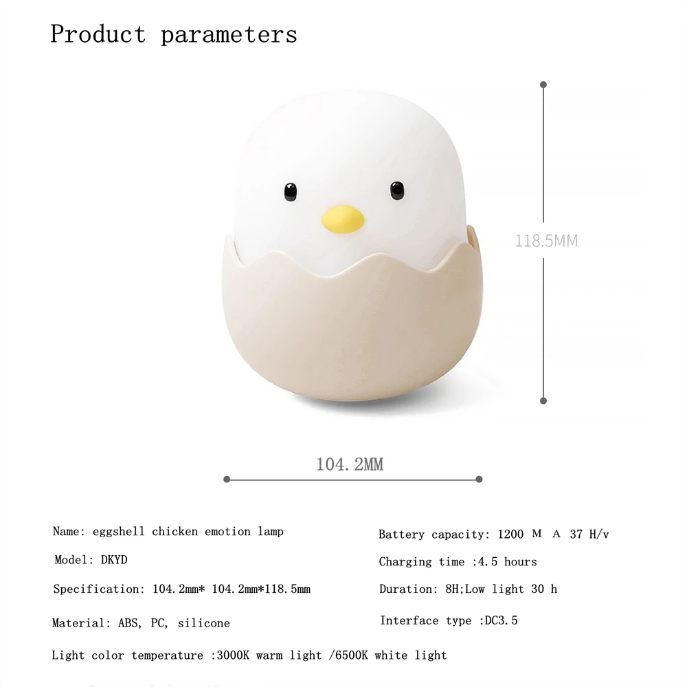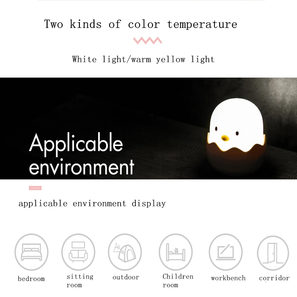 Светодиодный мягкий силиконовый ночник, симпатичный силикагелевый светильник в форме цыпленка с затемнением для детской спальни, прикроватный ночник