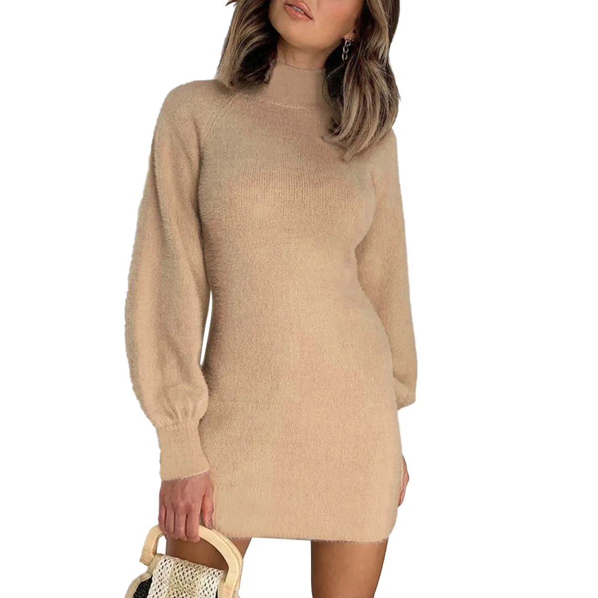 Женское модное однотонное платье с длинным рукавом, повседневное женское платье с длинным рукавом
