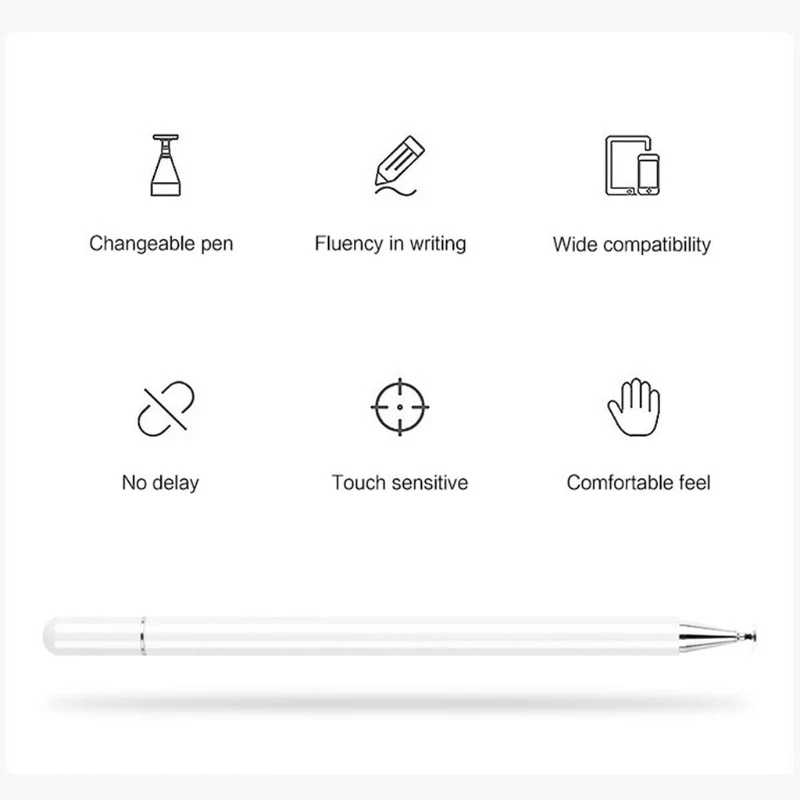 Особенности:Особенности стилусов: корпус ручки из алюминиевого цилиндра, положение наконечника диска соединено металлическими стальными шариками для улучшения срока службы и двойной долговечности. Оба конца являются заменяемыми, обеспечивая плавное написание ручки для ваших тачскрин планшетов и смартфонов.Дизайн стилусов: Попрощайтесь с традиционным дизайном, двусторонняя магнитная крышка, не нужно крутить или толкать шляпу обратно, просто положите шляпу близко к ручке (с обеих сторон) автоматически впитывает.Совместимые продукты: для Apple- iPad-, iPad- Mini, iPhone-, Android- Tablet, Android- Phone, Samsung- Galaxy-, Microsoft-и других емкостных устройств с сенсорным экраном.Удобство: специальный дизайн со скрытым диском. Сменные наконечники диска скрываются внутри крышки ручки. Он может убедиться, что вы можете использовать ручку для экстренной ситуации, когда диск сломан или потерян. Не нужно выносить всю коробку. Этот стилус также имеет кожаный чехол, убедитесь, что вы можете носить ручку в любой ситуации.