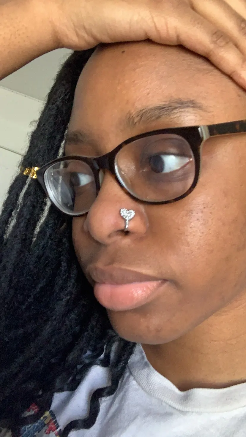 Не отлично подходит как кольцо для носа. Без пуговиц или черного носа