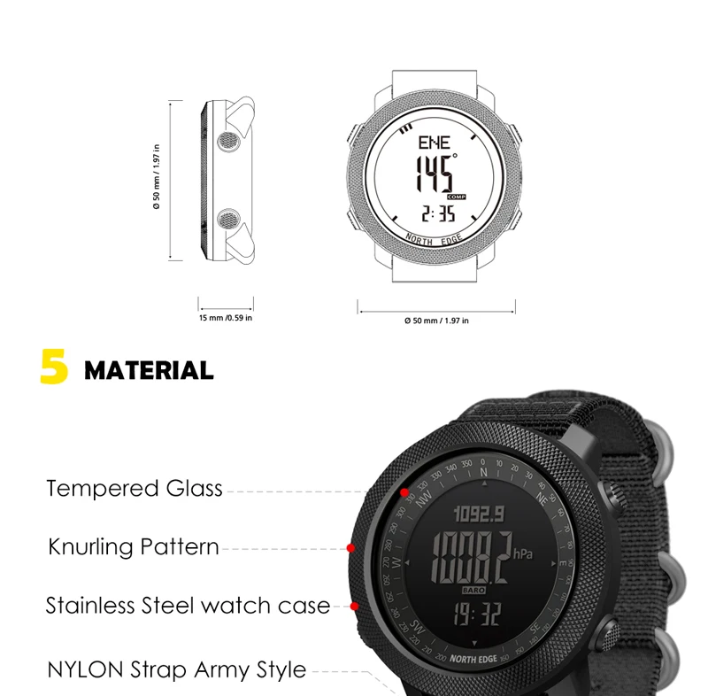 Смарт-часы North Edge мужские с спидометром, спортивные часы, походные с высотомером, барометром, компасом, фитнес-трекером, цифровые носимые часы