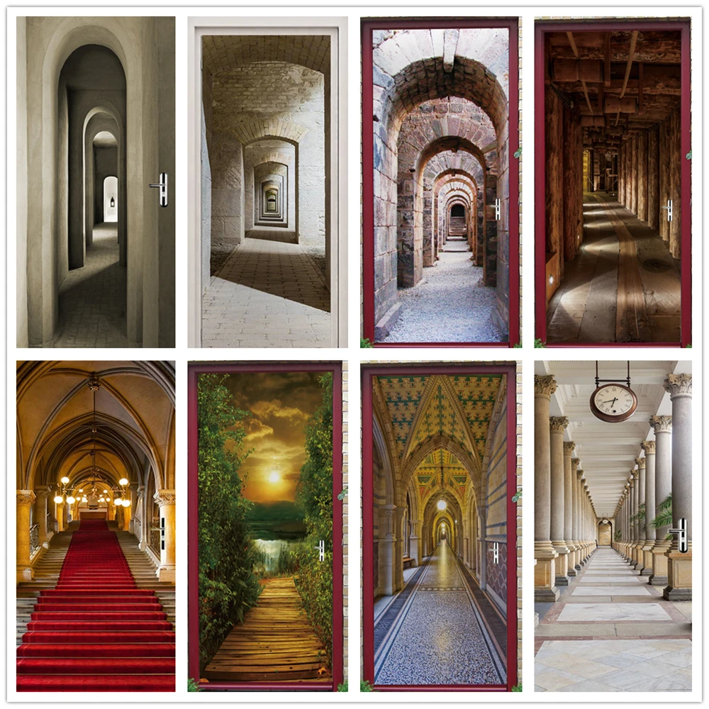 Наклейка на дверь с аркой, современный коридор, туннель с удлинителем, для обновления и закрытия помещений