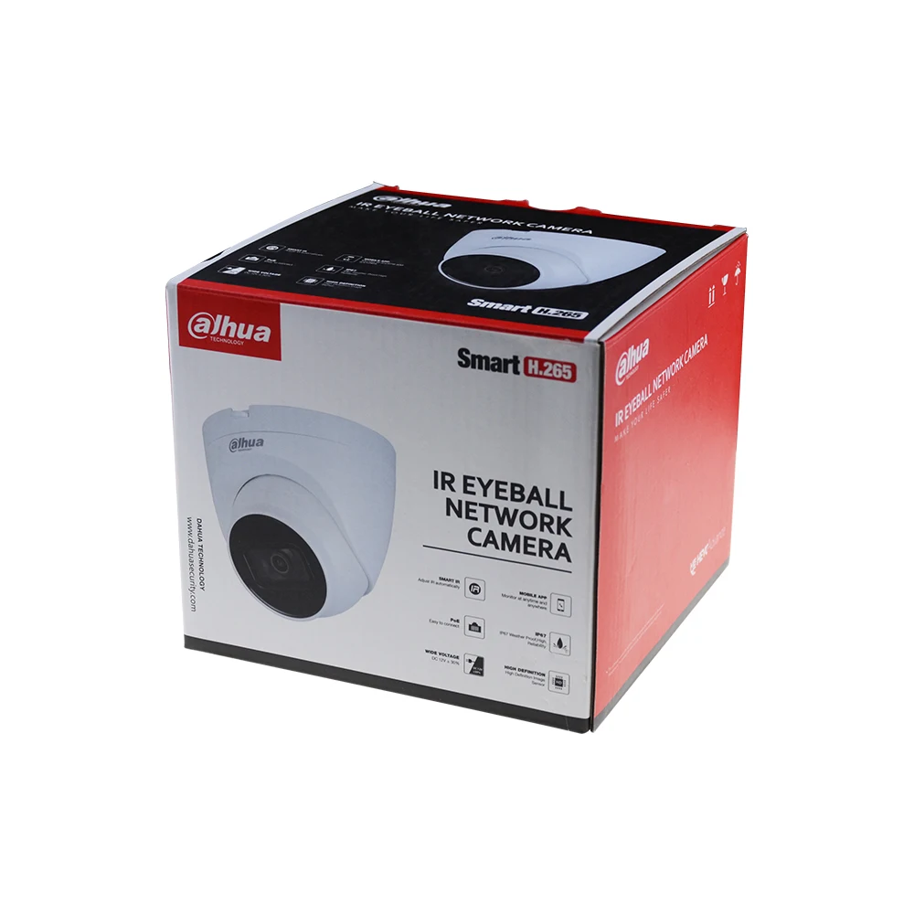 4MP WDR IR Eyeball Network Camera> 4MP, 1/3” CMOS image sensor, low illuminance, high image definition> Outputs 4MP (2560 × 1440)@25/30 fps, Max. supports 4MP (2688 × 1520) @ 20 fps> H.265 codec, high compression rate, ultra-low bit rate> Built-in IR LED, max IR distance: 30 m> ROI, SMART H.264/H.265, flexible coding, applicable to various bandwidth and storage environments> Rotation mode, WDR, 3D DNR, HLC, BLC, digital watermarking, applicable to various monitoring scenes> Intelligent detection: Intrusion, tripwire> Abnormality detection: Motion detection, video tampering,no SD card, SD card full, SD card error, network disconnected, IP conflict, illegal access, voltage detection> Supports max. 256 GB Micro SD card, built-in Mic> 12V DC/POE power support> IP67 protection