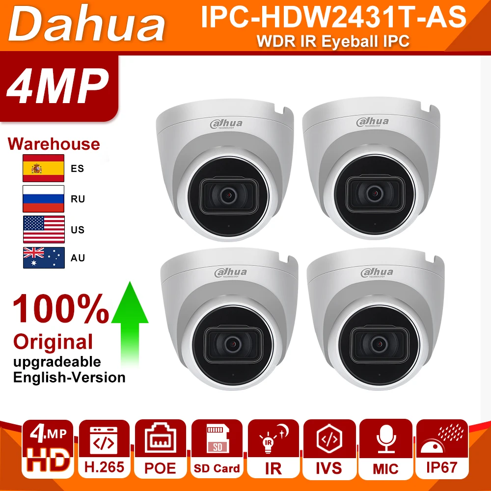 Оригинальная IP-камера Dahua 4 МП Starlight, фотокамера HD POE, микрофон, слот для SD-карты, H.265, IP67, IVS, IPC, встроенный микрофон, 4 шт.лот