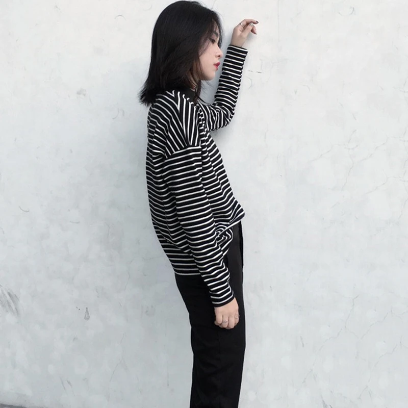 Женская футболка с длинным рукавом, черная или белая Повседневная футболка с круглым вырезом, в полоску, осень 2022