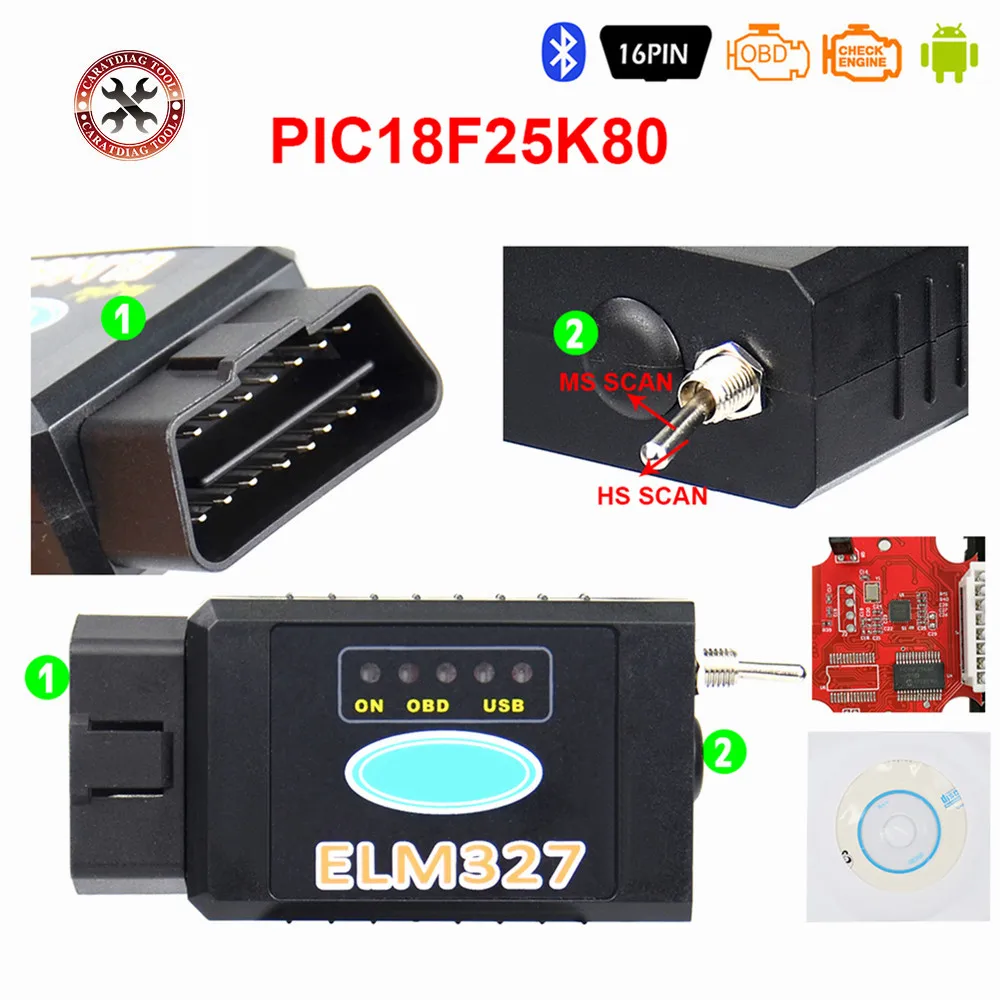 ELM327 USB Bluetooth работает на Forscan для F-ord HS CAN MS CAN V1.5 автомобильный диагностический инструмент OBD2 ELM327 USB PIC18F25K80 FTDI чип