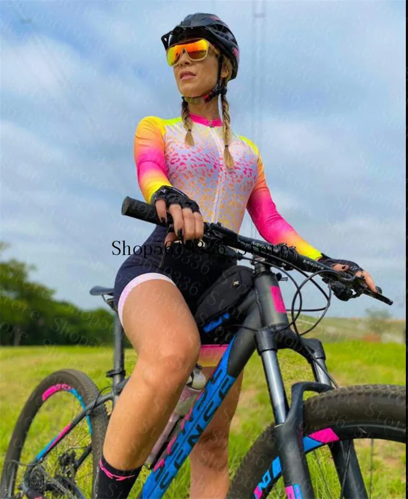 2020 профессиональный костюм для триатлона, Женский велосипедный Трикотажный костюм, комбинезон, одежда для велоспорта, комплект для велоспорта с длинными рукавами и розовыми гелевыми подушечками