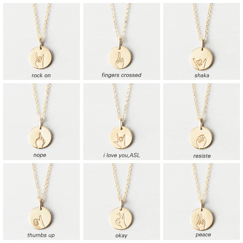 Ожерелье из стерлингового серебра 925 пробы с подвеской в виде жестов и диска, простой диск, знак, язык ASL, подвеска, ожерелье для женщин, подарок для девочек