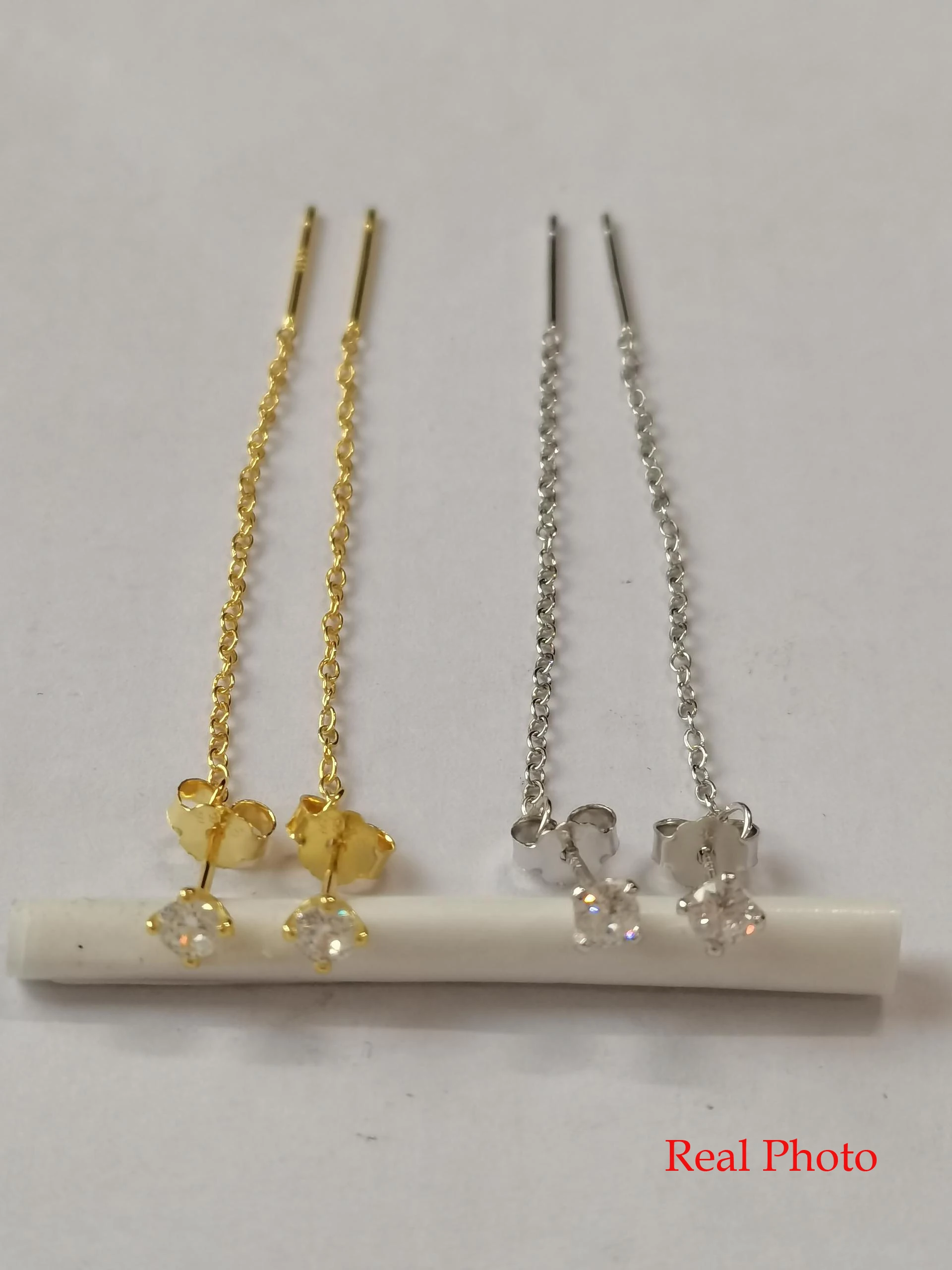 Серьги-подвески из стерлингового серебра 925 пробы с длинной цепочкой и кристаллами, длинная линейная подвеска и серьги-подвески, ювелирные изделия для женщин, подарок