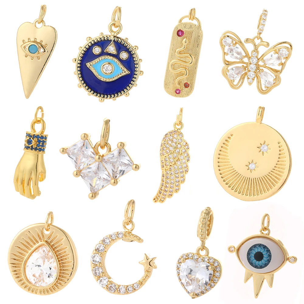 Подвеска в виде бабочки, для изготовления ювелирных изделий, Золотая змея, сердца, сглаза, синий глаз, сделай сам, серьги, браслет, ожерелье