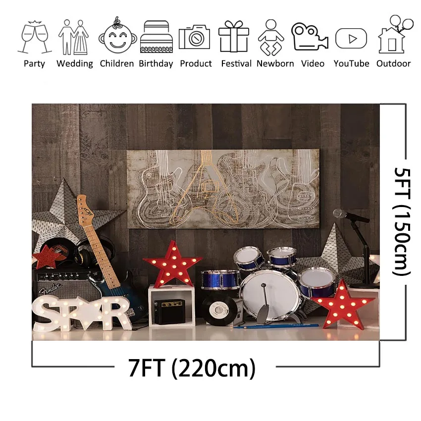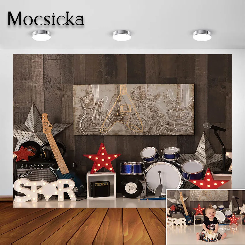 Фотофон Mocsicka с изображением рок-звезд, барабана гитары, музыкальных инструментов, детского торта, разбитого портрета, фотографический фон