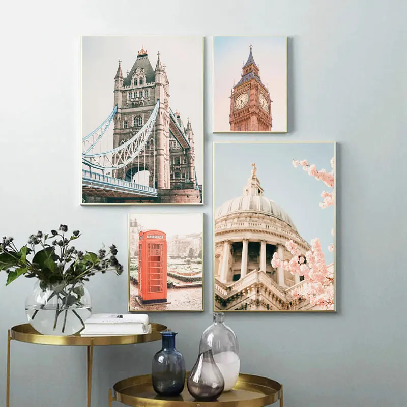 Скандинавский стиль, уличные пейзажи, печать на холсте, картина для гостиной, Лондонский город, плакат, знаменитый пейзаж, настенная живопись для домашнего декора