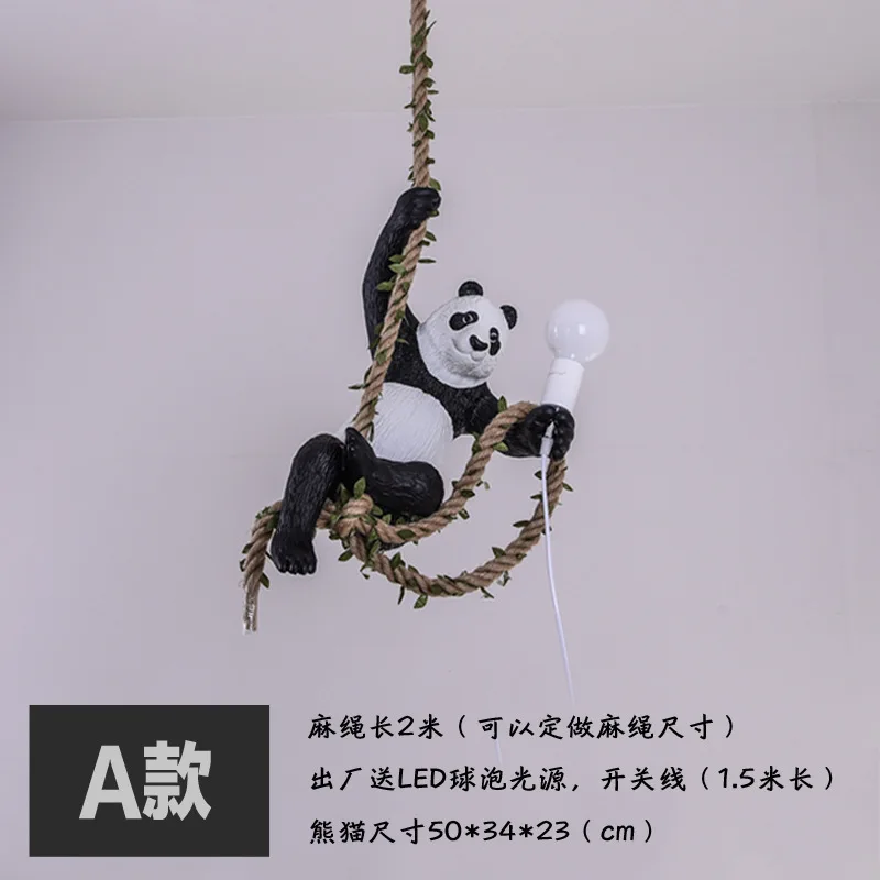 Творческий смолы светильник в форме панды животных индустриальный Лофт кухонный светильник закрепленный пеньковая веревка подвесной светильник ресторан домашний Декор Светильник