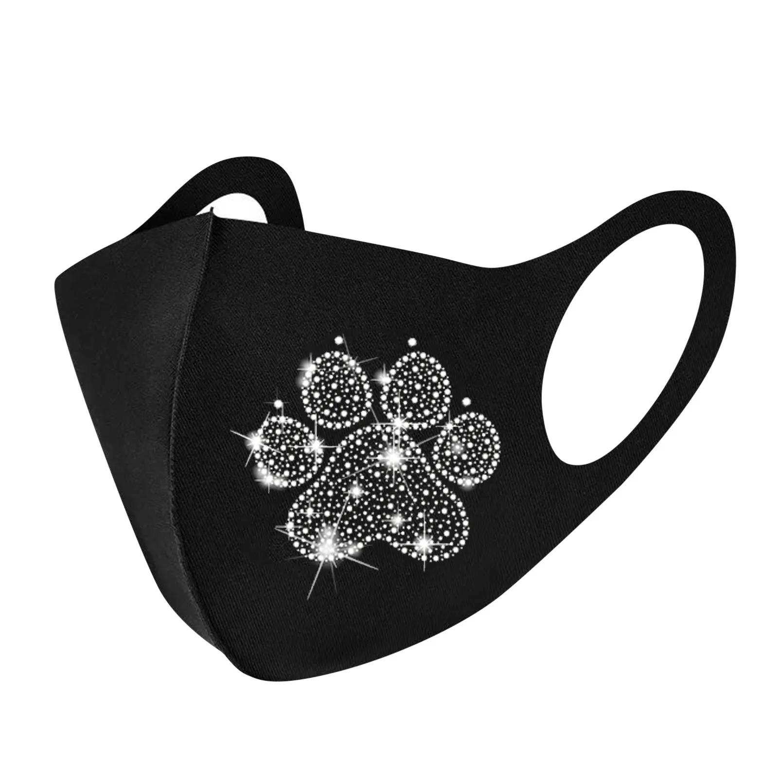 Милая Бриллиантовая маска для лица в виде собачьей лапы, Пылезащитная маска для лица с принтом, блестящие стразы маски для лица, рта, маска для женщин