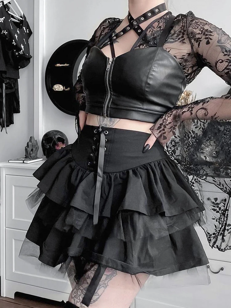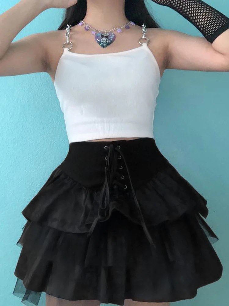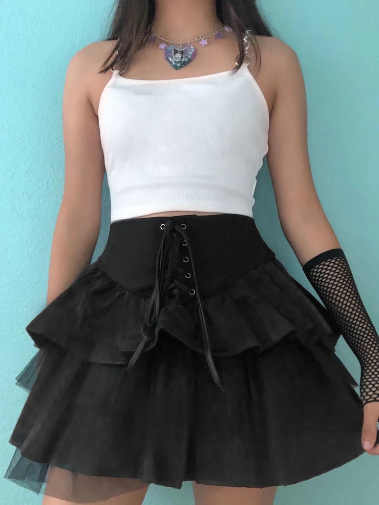 Торговый центр гот Y2K шнуровка Высокая Талия юбки с оборками, в ст...