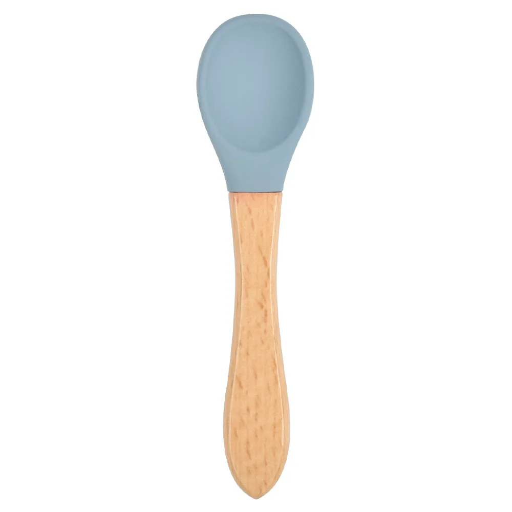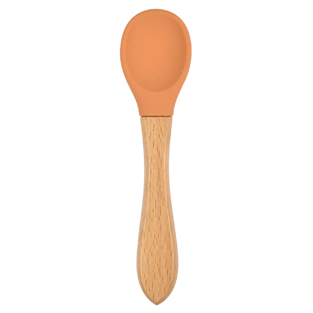 Силиконовая ложка, деревянная ручка для кормления, детская посуда