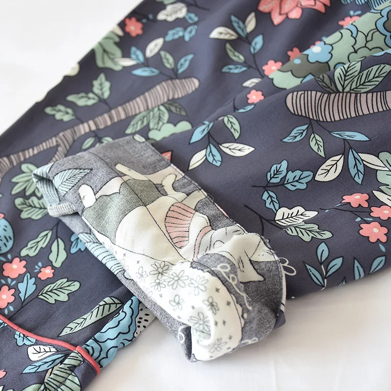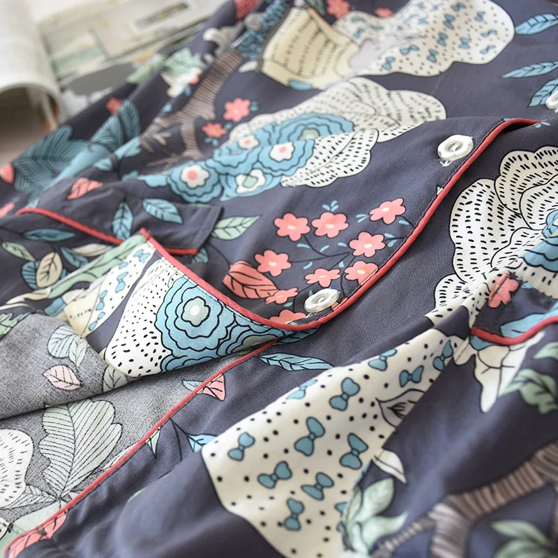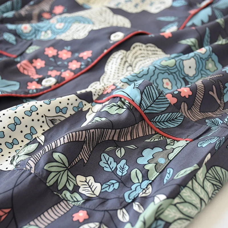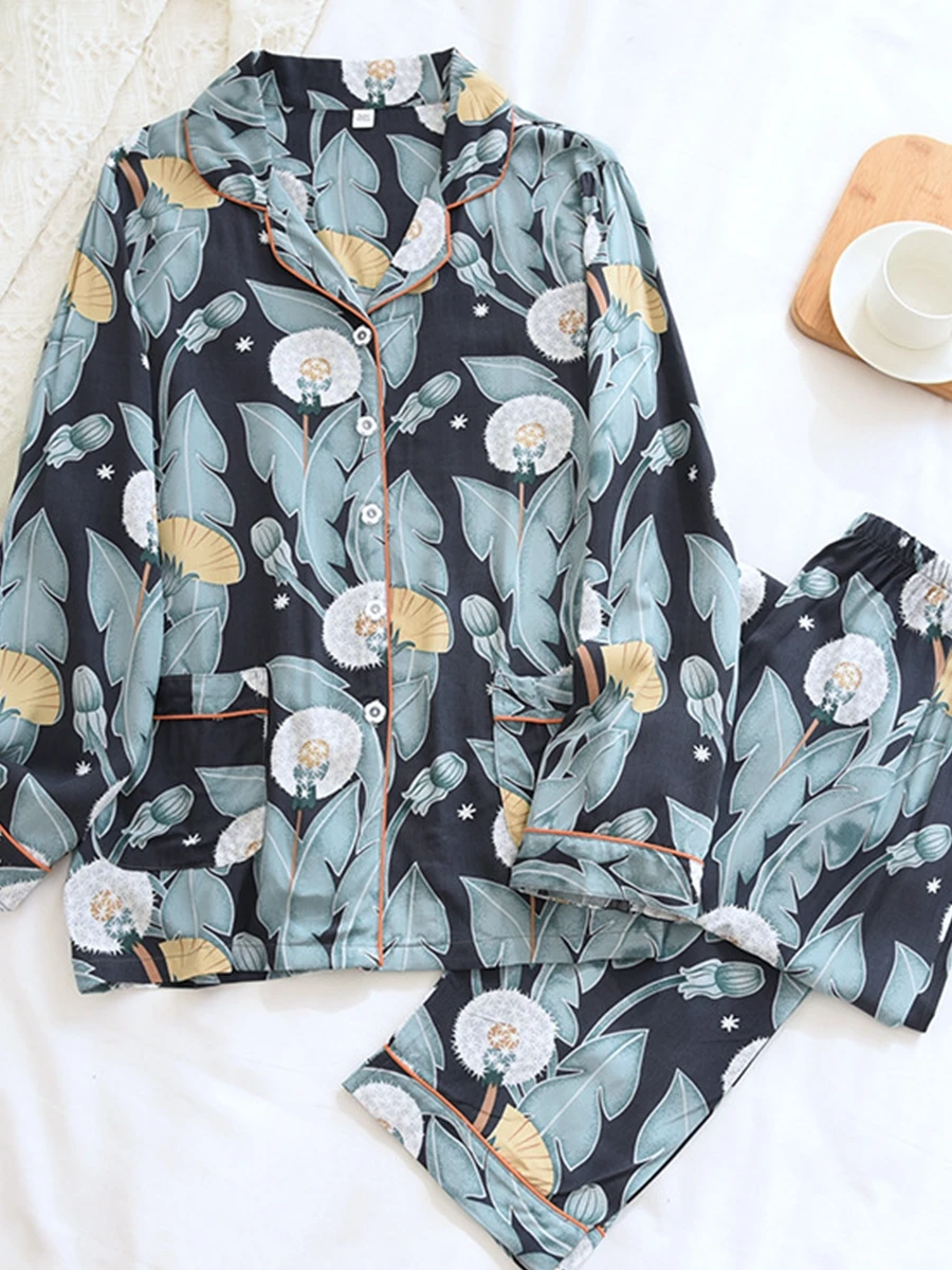 Пижама женская с отложным воротником и длинным рукавом, 100% вискоза, винтажная пижама с принтом и карманами, на веснулето