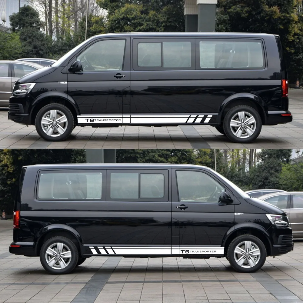 2 шт., наклейки в полоску на боковую юбку автомобиля для VW TRANSPORTER T5 T6, гоночный Декор кузова, графические виниловые аксессуары