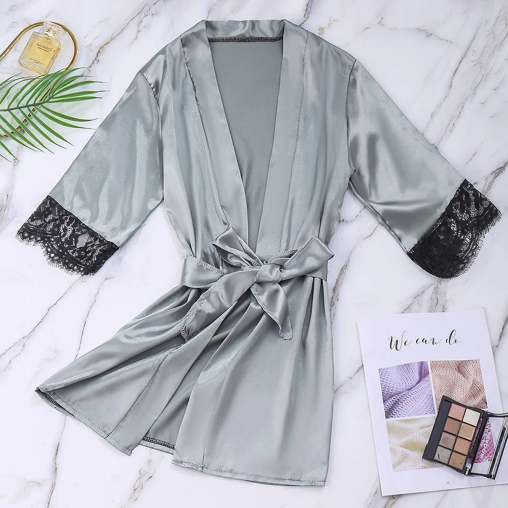 Атласные шелковые пижамы халат кружевное белье женское нижнее белье пижамы брюки с поясом