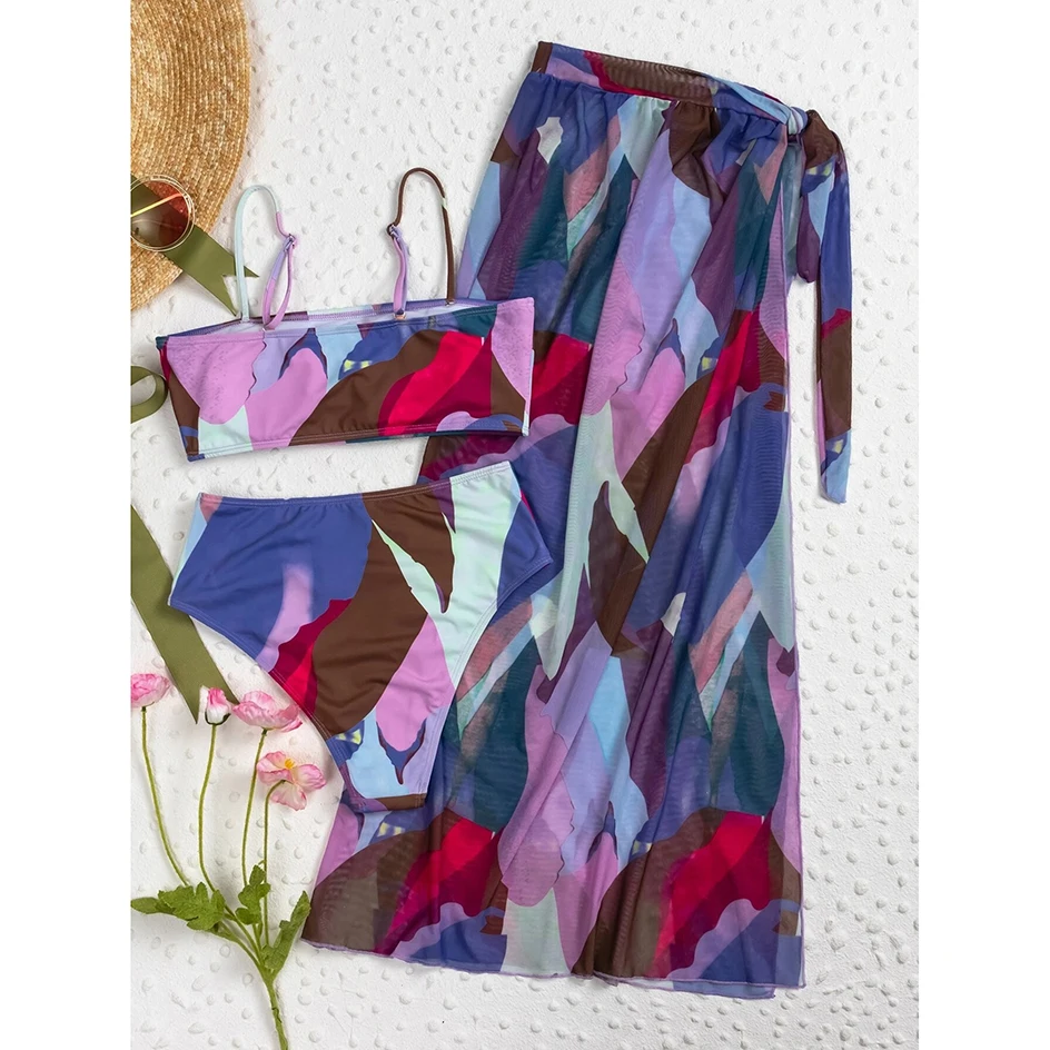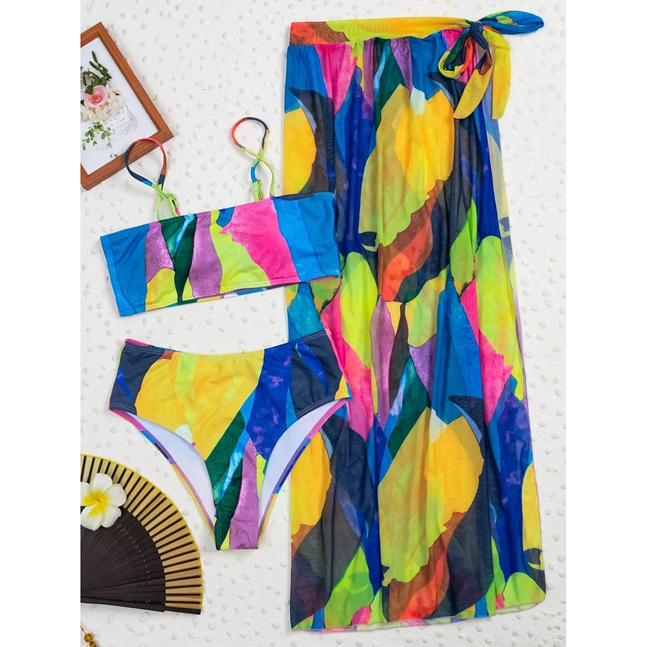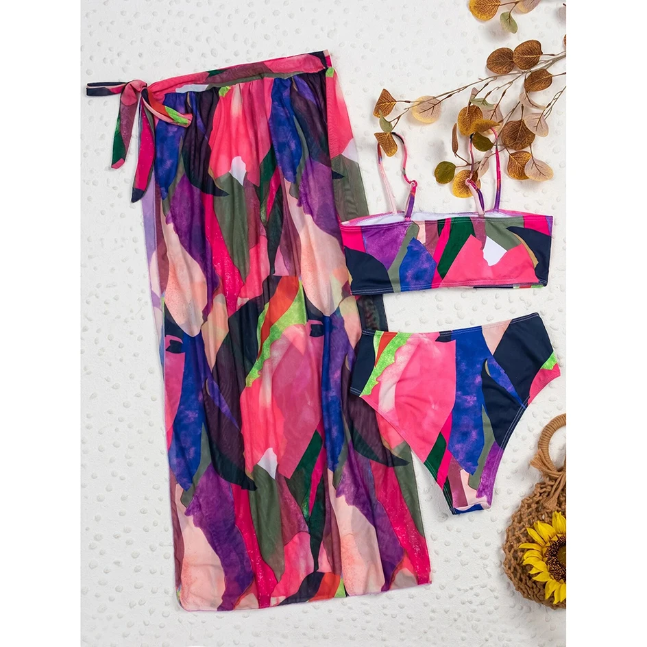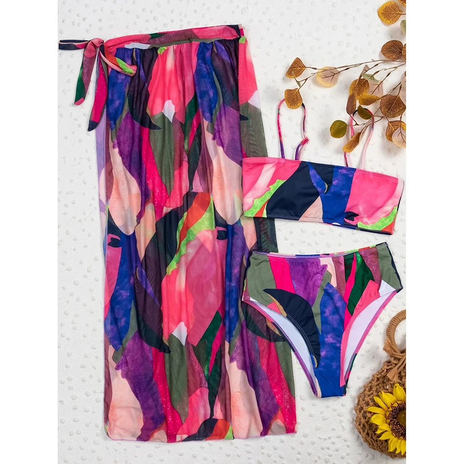 Бикини с высокой талией, сексуальный купальный костюм, женская накидка для плавания, комплект бикини из 3 предметов, Женская пляжная одежда для плавания, купальный костюм, 2021
