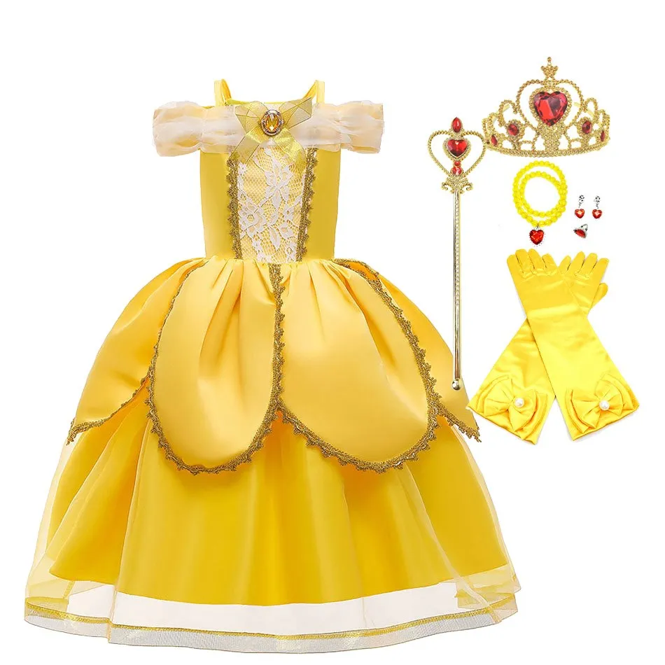 Детский карнавальный костюм Красавица и чудовище, для девочек, на день рождения, для свадьбы