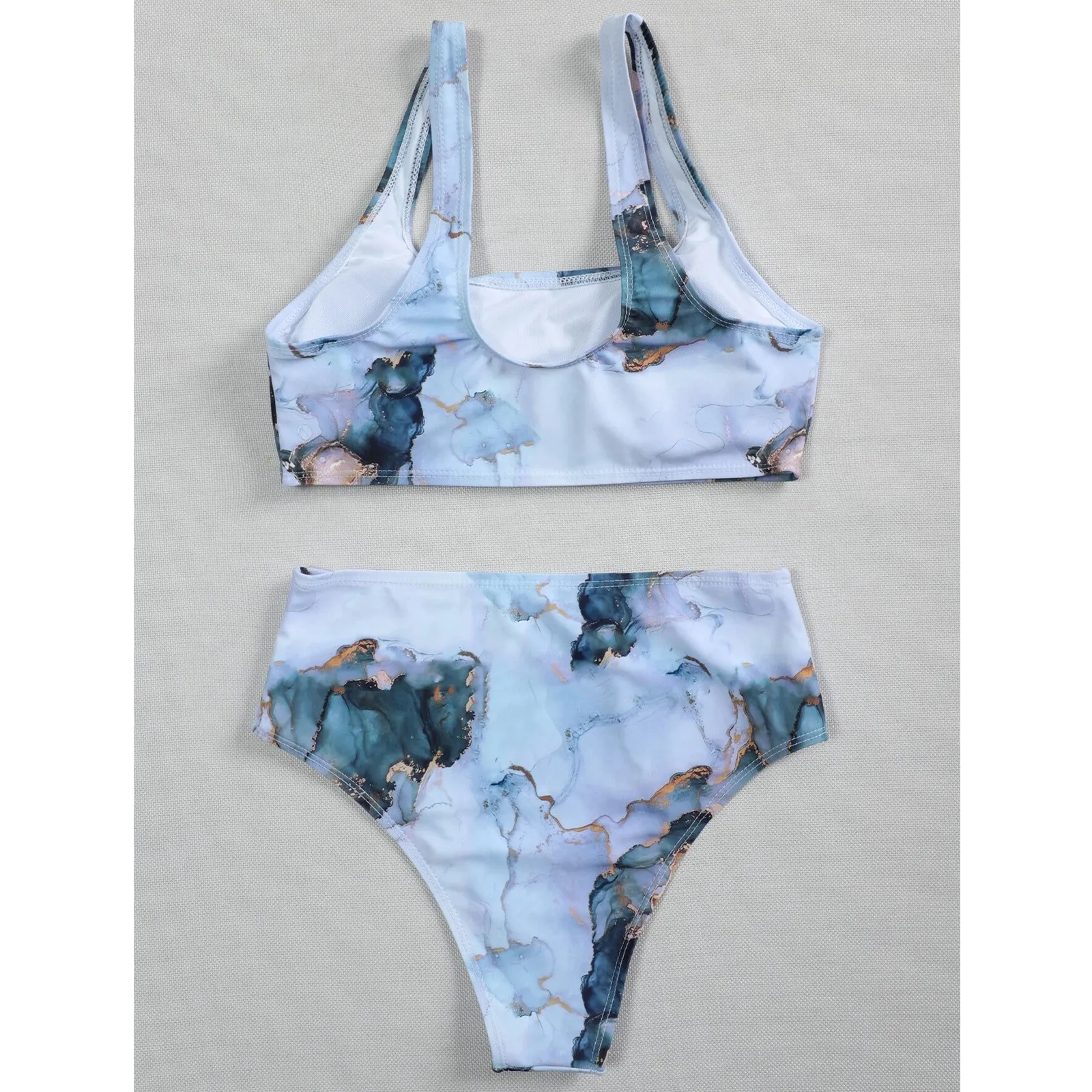 Бикини с высокой талией, новинка 2021, купальник с принтом, женский купальный костюм с топом-трубой, женское Бразильское бикини, комплект бикини, женские купальники