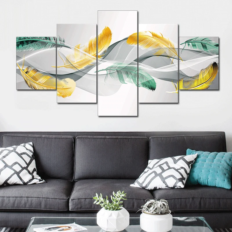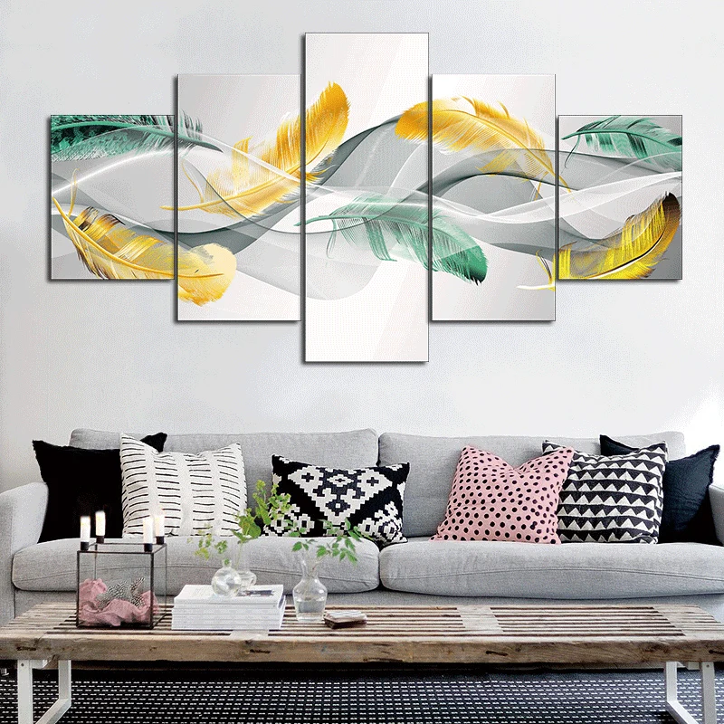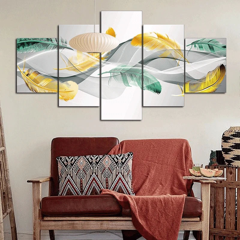 Картина без рамы, абстрактная модульная, с перьями, 5 шт.