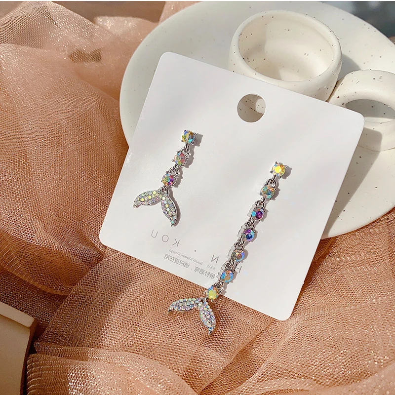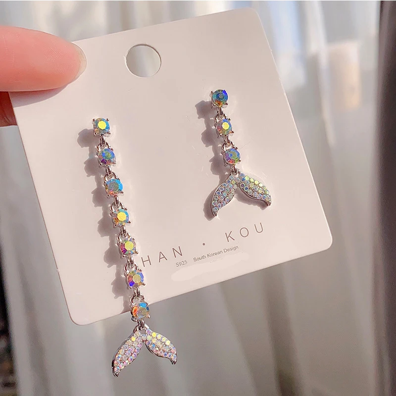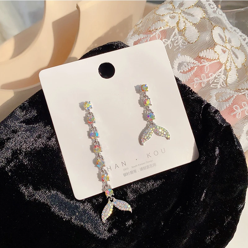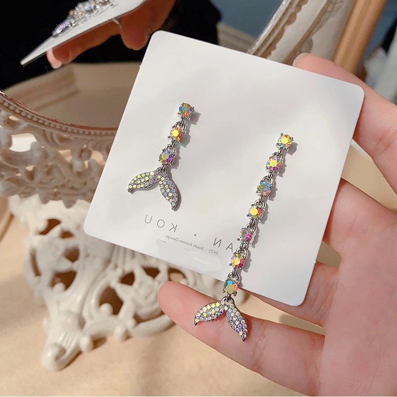 Необычный дизайн, уникальные разноцветные женские серьги рыбий хвост с кристаллами, длинные серьги-капли, украшения для свадебной церемонии невесты, оптовая продажа 056