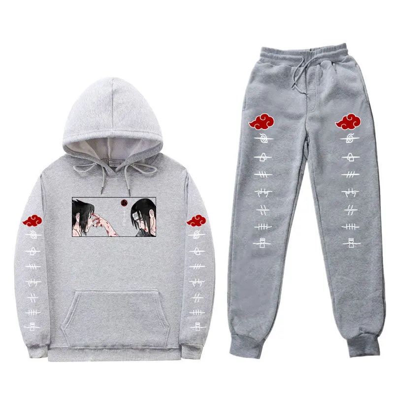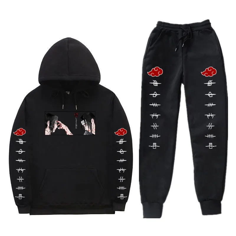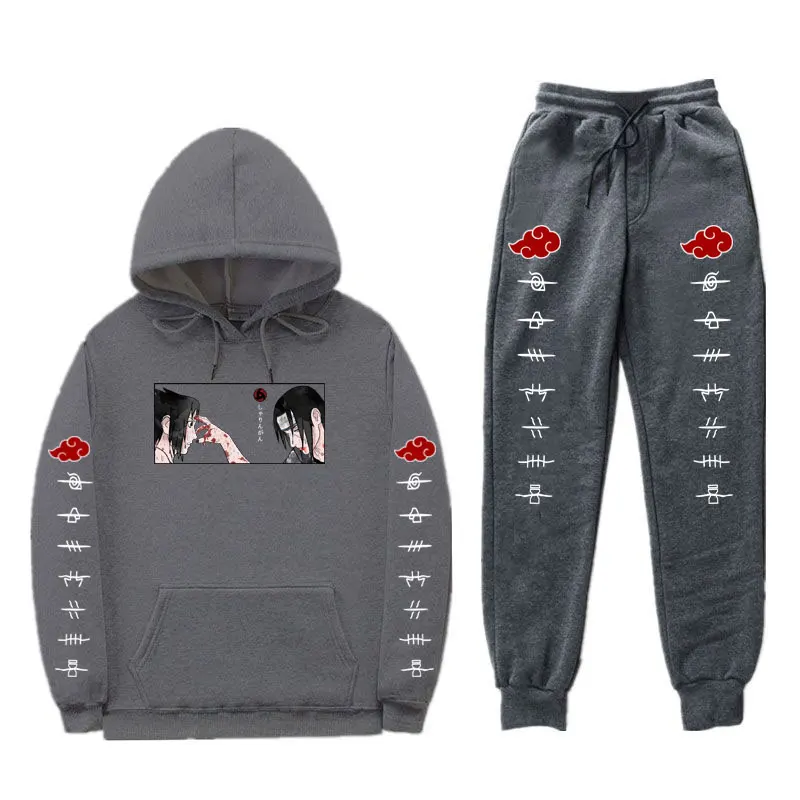 Комплект спортивный мужской из 2 предметов, Спортивная толстовка с капюшоном и штаны с принтом Саске Учиха, Осень-зима
