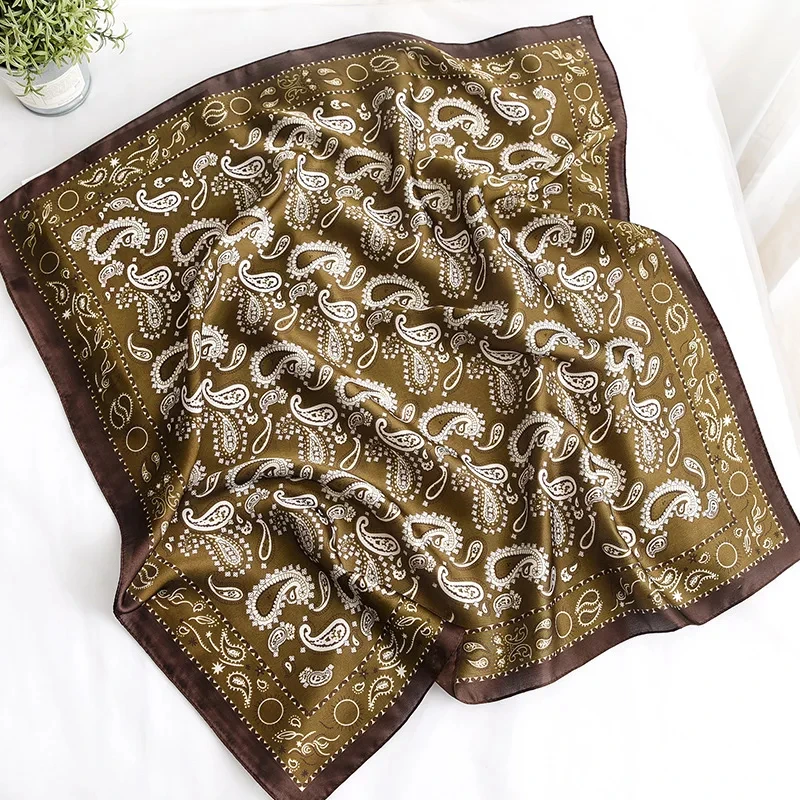 Модный принт Пейсли волос шарф женский Шелковый сатин платок маленький бандана головной платок 70 см квадратный вырез с запахом Женская шаль платок глушитель выхлопных газов