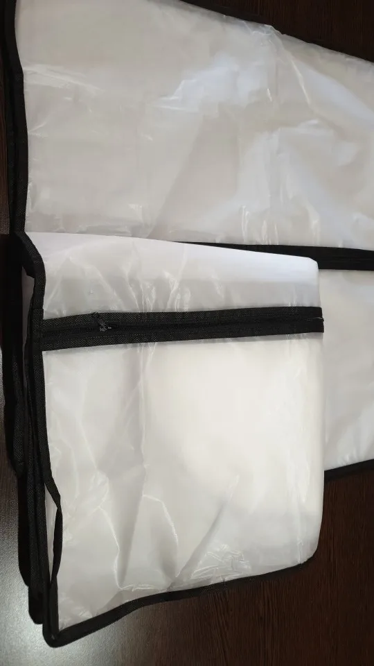 Чехлы хорошего качества. Очень плотные. Упакованы аккуратно. Единственное что может не устроить, это-ширина. Для одежды взрослого человека они узковаты. Добавить бы сантиметров- 5 а лучше-10, чтобы одежда не помялась. Надо делать их в ширину 70 см. А качество чехлов понравилось. Внутри очень гладкие. Сшиты аккуратно. Молния работает хорошо.