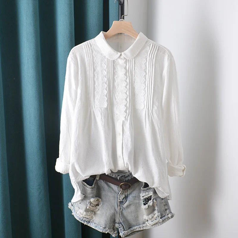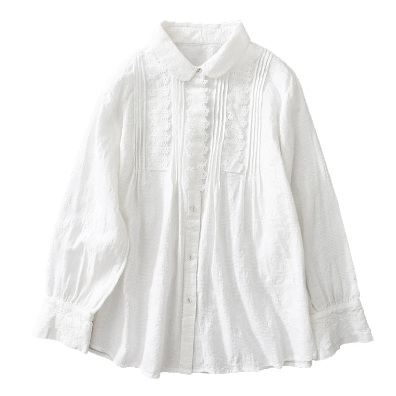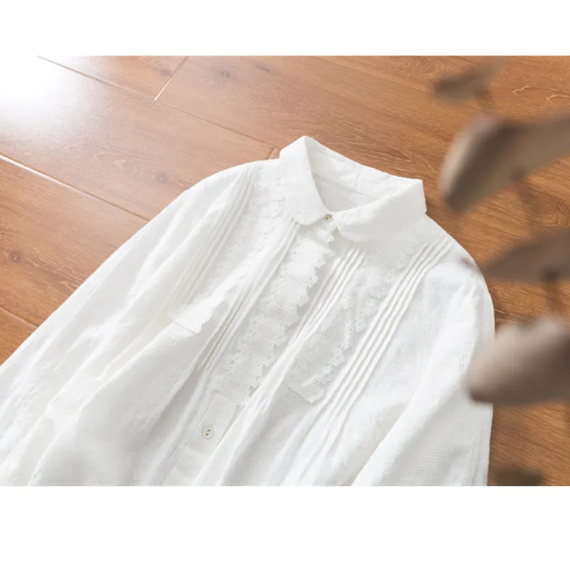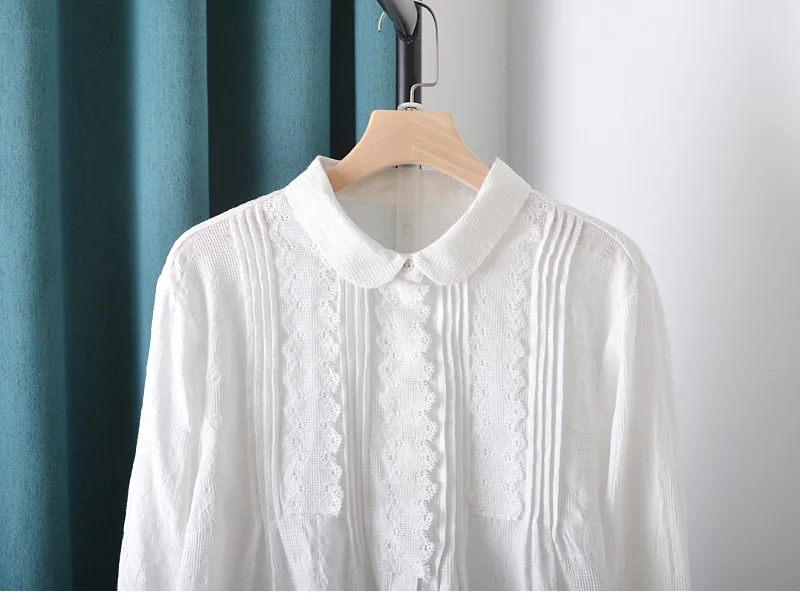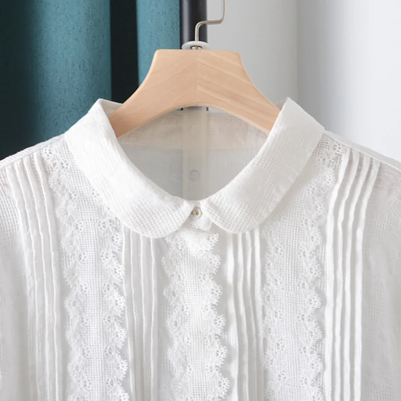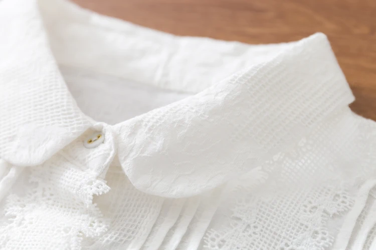 Lamtrip уникальный и кружевным переплетением, Kawaii с воротником в стиле Питер Пэн английская Блузка-пуловер Хлопок 100% белый короткий топ