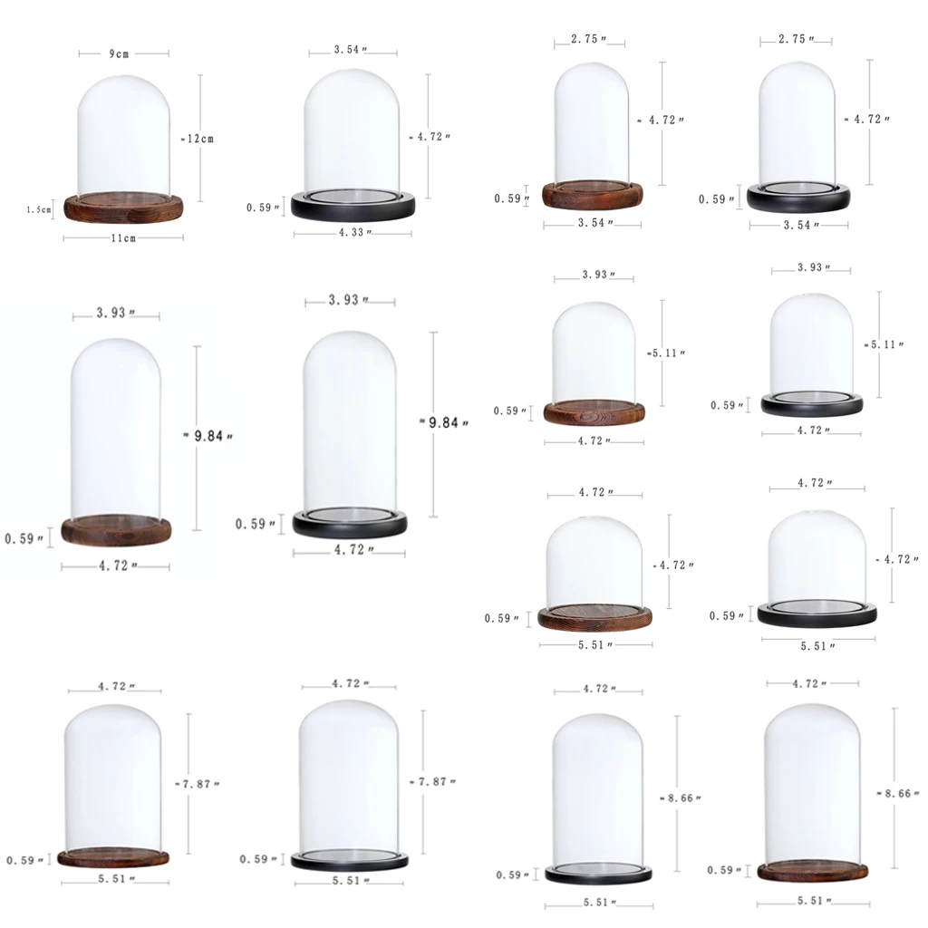 Размер B: стеклянный купол: 9x12 см (Dia.xH); Basa Dia. На высоком каблуке 11 см; Высота основания: 1,5 см
