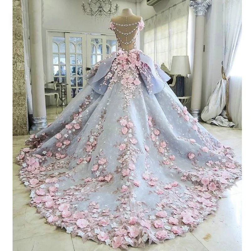 Wedding Dresses Pink FlowersBall Gown Wedding Gowns