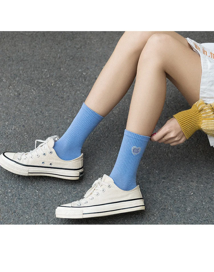 Носки женские хлопковые средней длины, милая сетчатая вышивка в Кор...