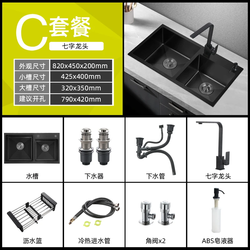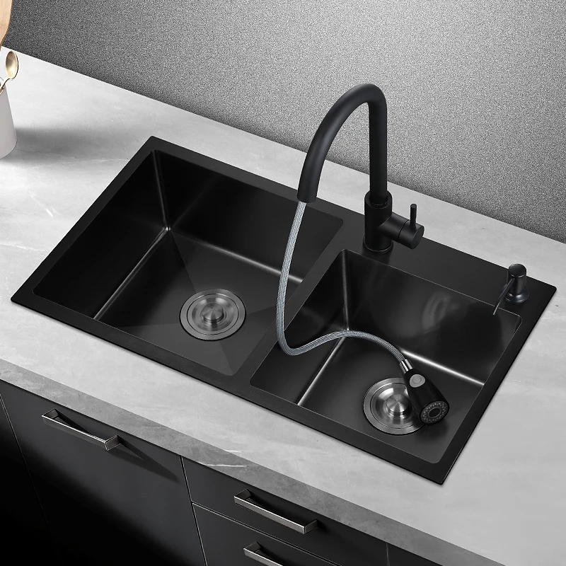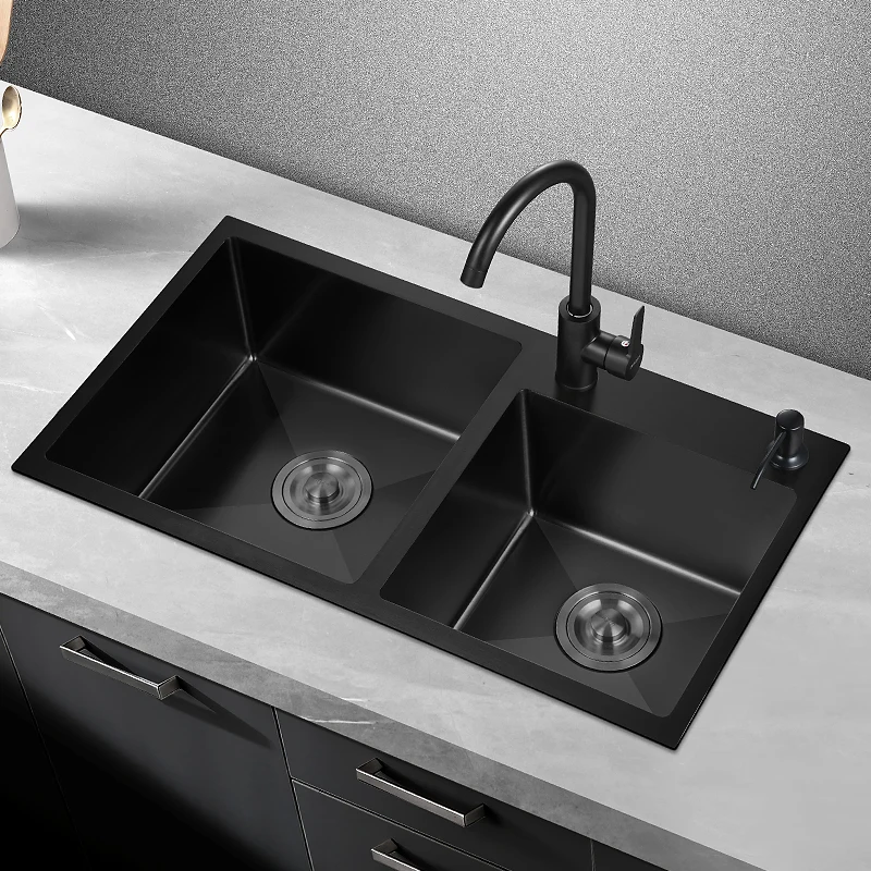 Раковина черная ручной работы из нержавеющей стали с двойным кишечником, 304x43 см