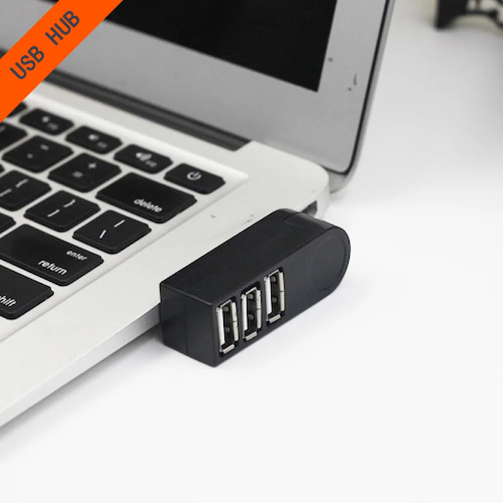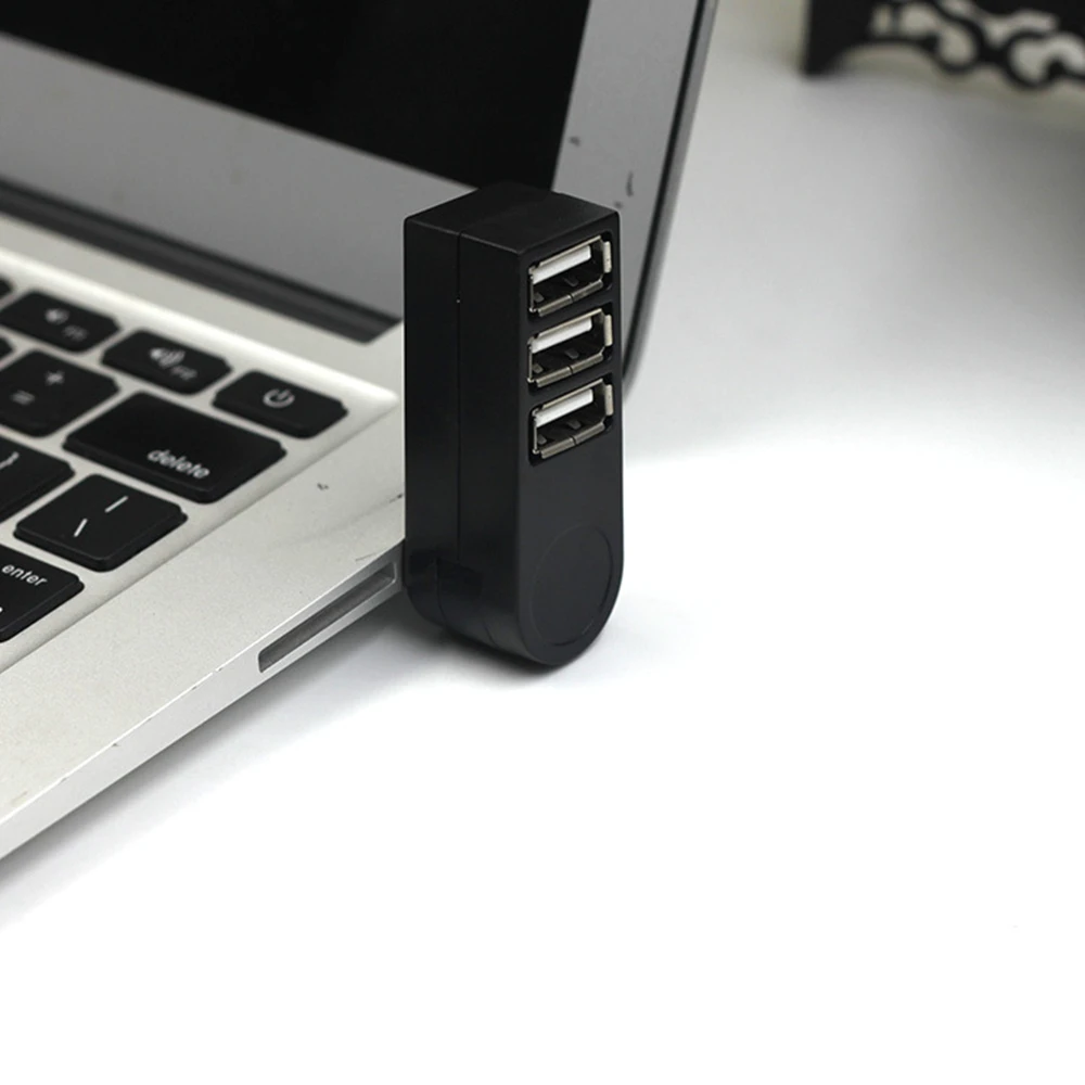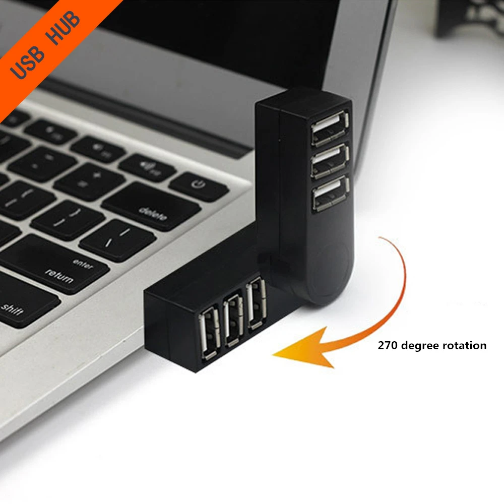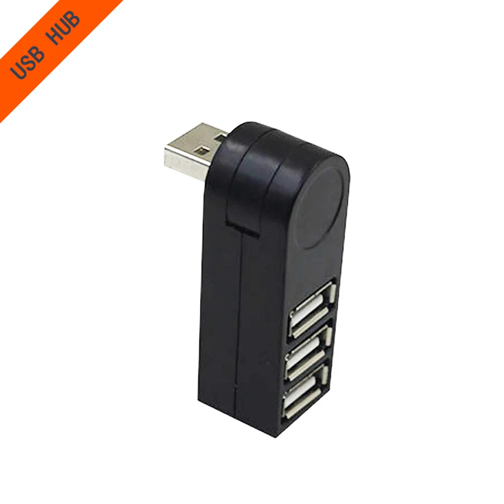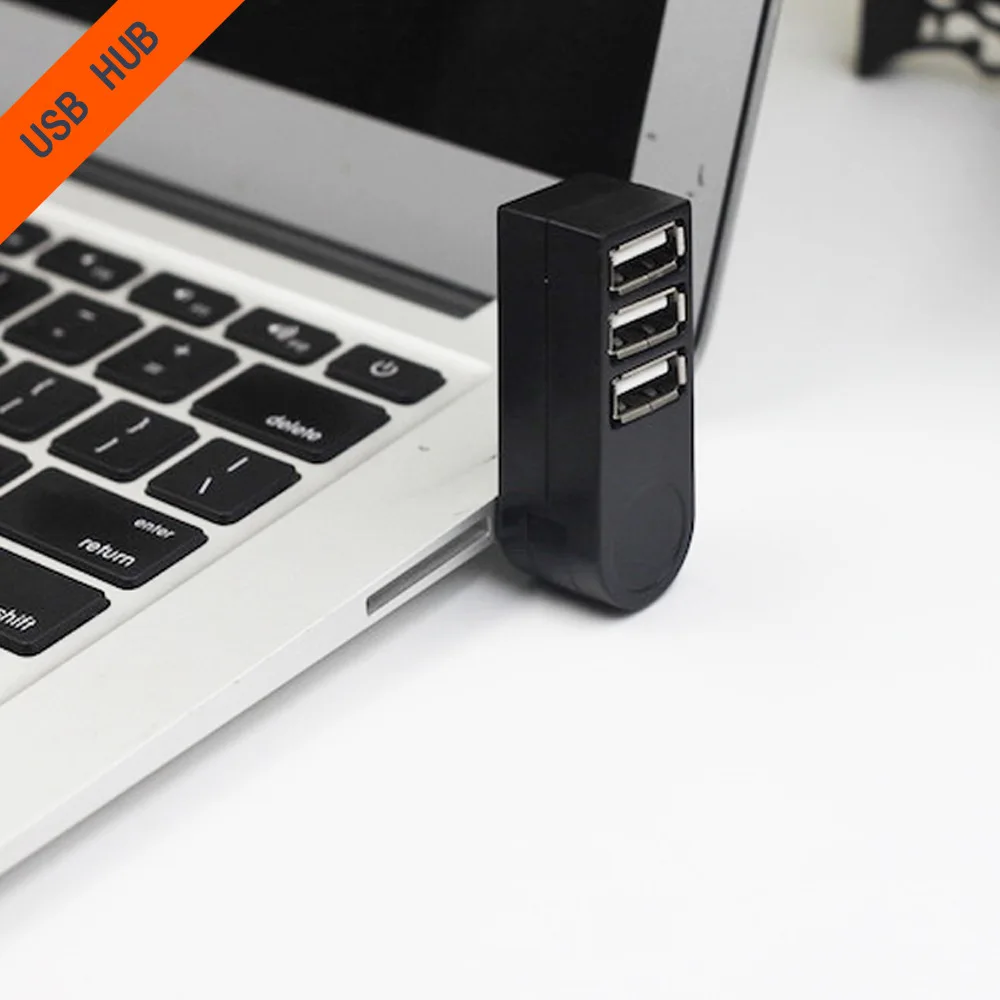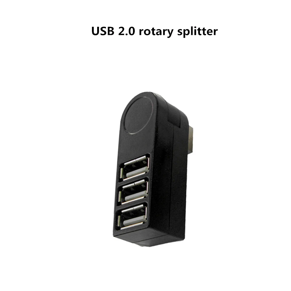 Мини-концентратор USB 2,0, 3 порта USB 2,0, вращающийся разветвитель, адаптер, концентратор для ПК, ноутбука, ноутбука, черный