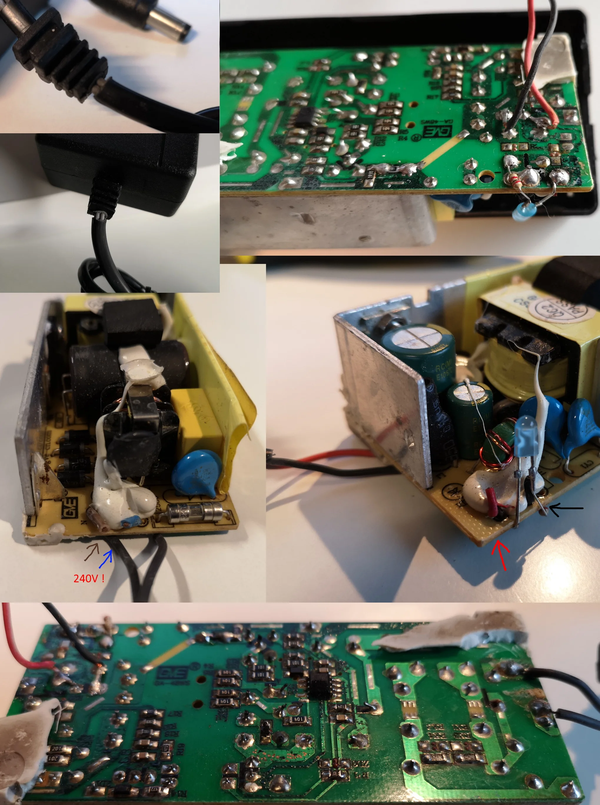 Не покупайте этот товар! Возможно, ваш дом загорится. Когда я получил товар, провод до 240 В уже сломан. Я открыть коробку, чтобы поменять шнур, но к моему большому удивлению, я увидел, что принт был поврежден. Оба провода были отрезаны, а новые были спаяны в другом месте. См. Фото документы...