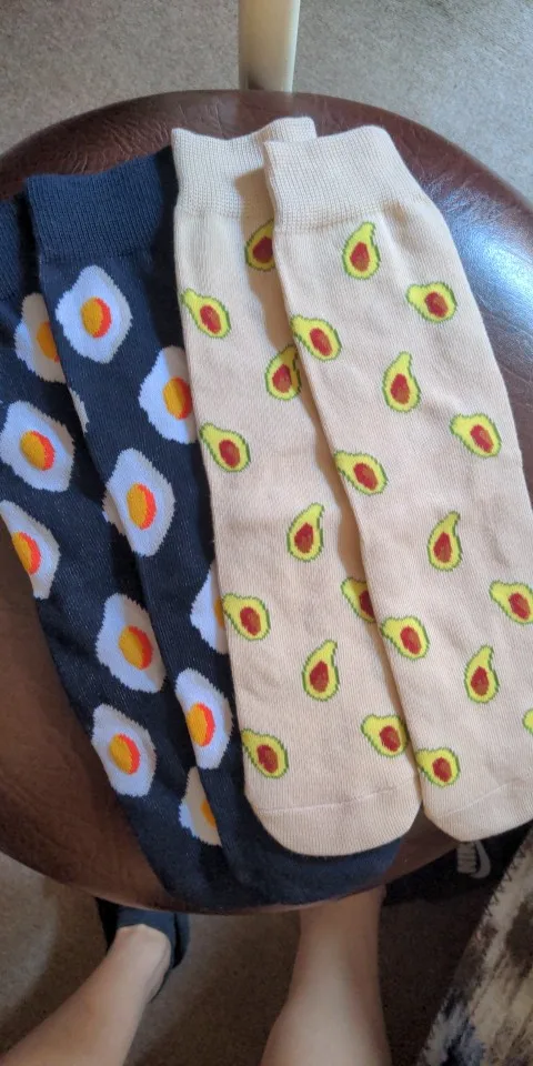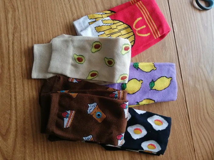 Носки женские хлопковые разных цветов, фрукты, бананы, авокадо, лимон, яйцо, печенье, Пончики
