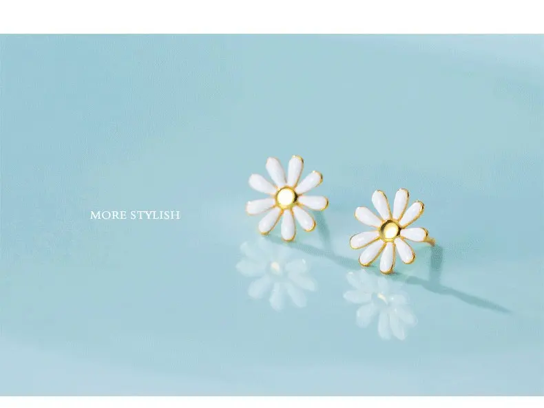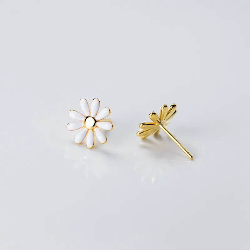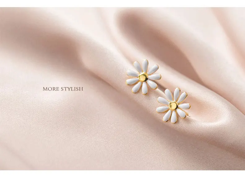 Женские серьги-гвоздики из серебра 925 пробы с цветком Маргаритки