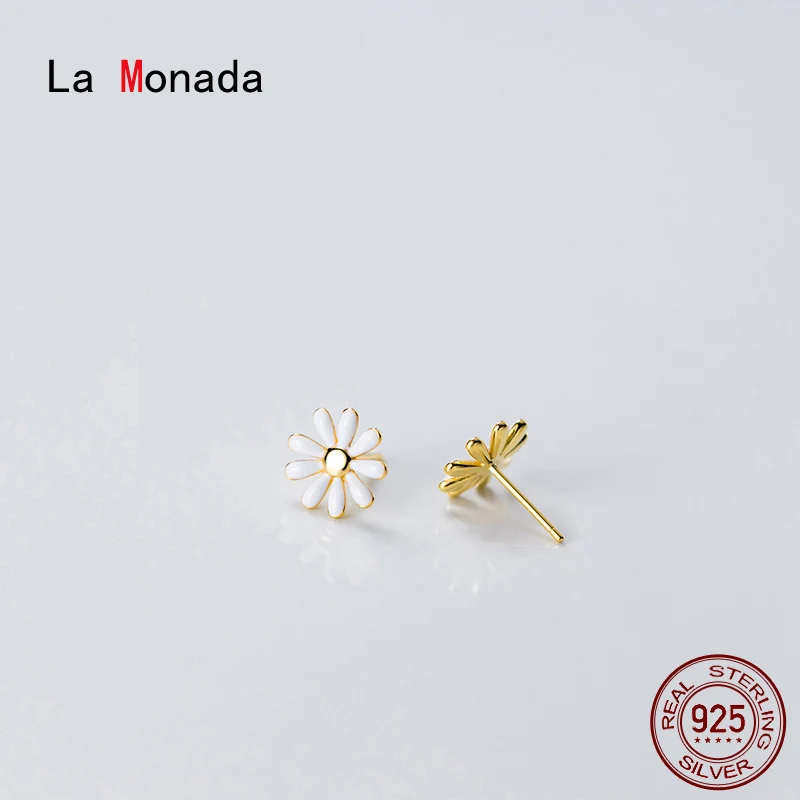 Женские серебряные серьги-гвоздики La Monada, серебряные серьги-гвоздики с цветами, Серебряные украшения 925 пробы, женские золотые серьги с маргаритками, серебряные 925