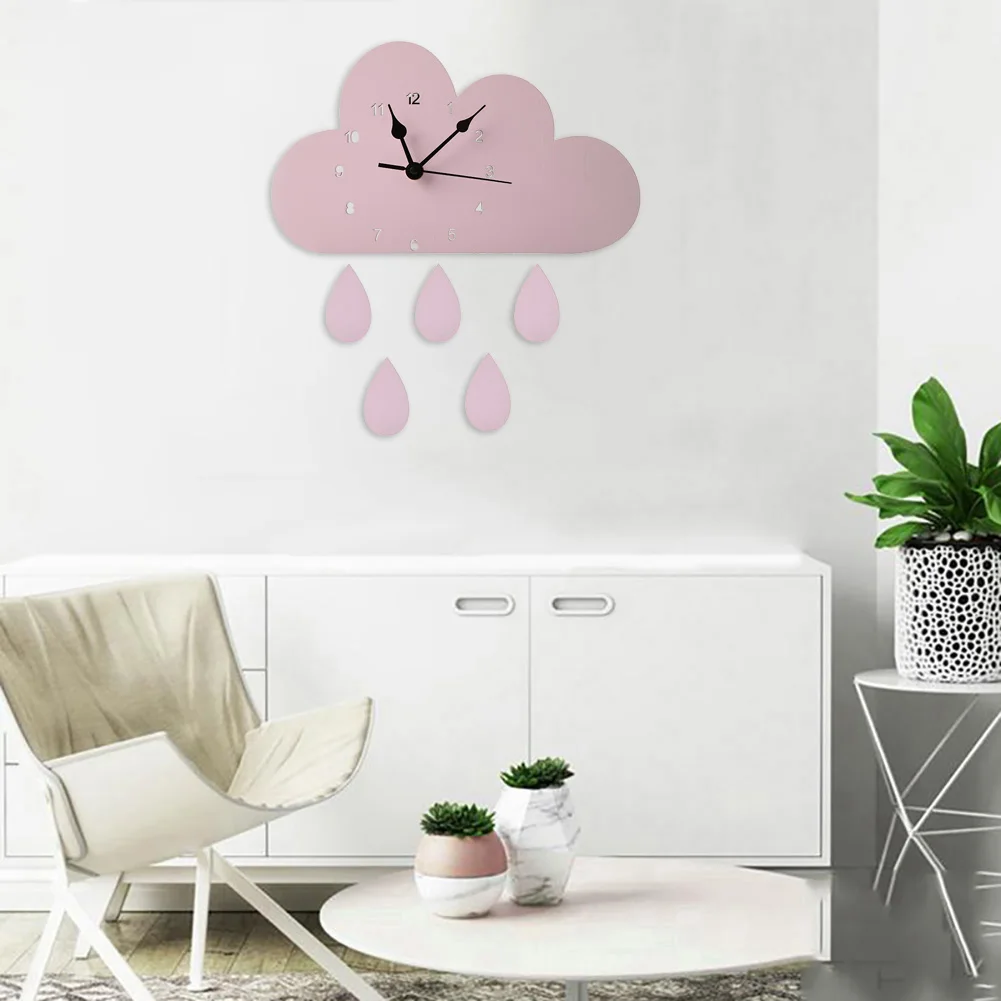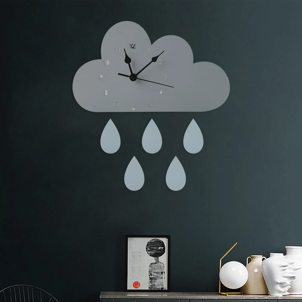 Настенные часы в скандинавском стиле, деревянные украшения для детской комнаты, гостиной, спальни, в форме облака, капли дождя, домашний декор