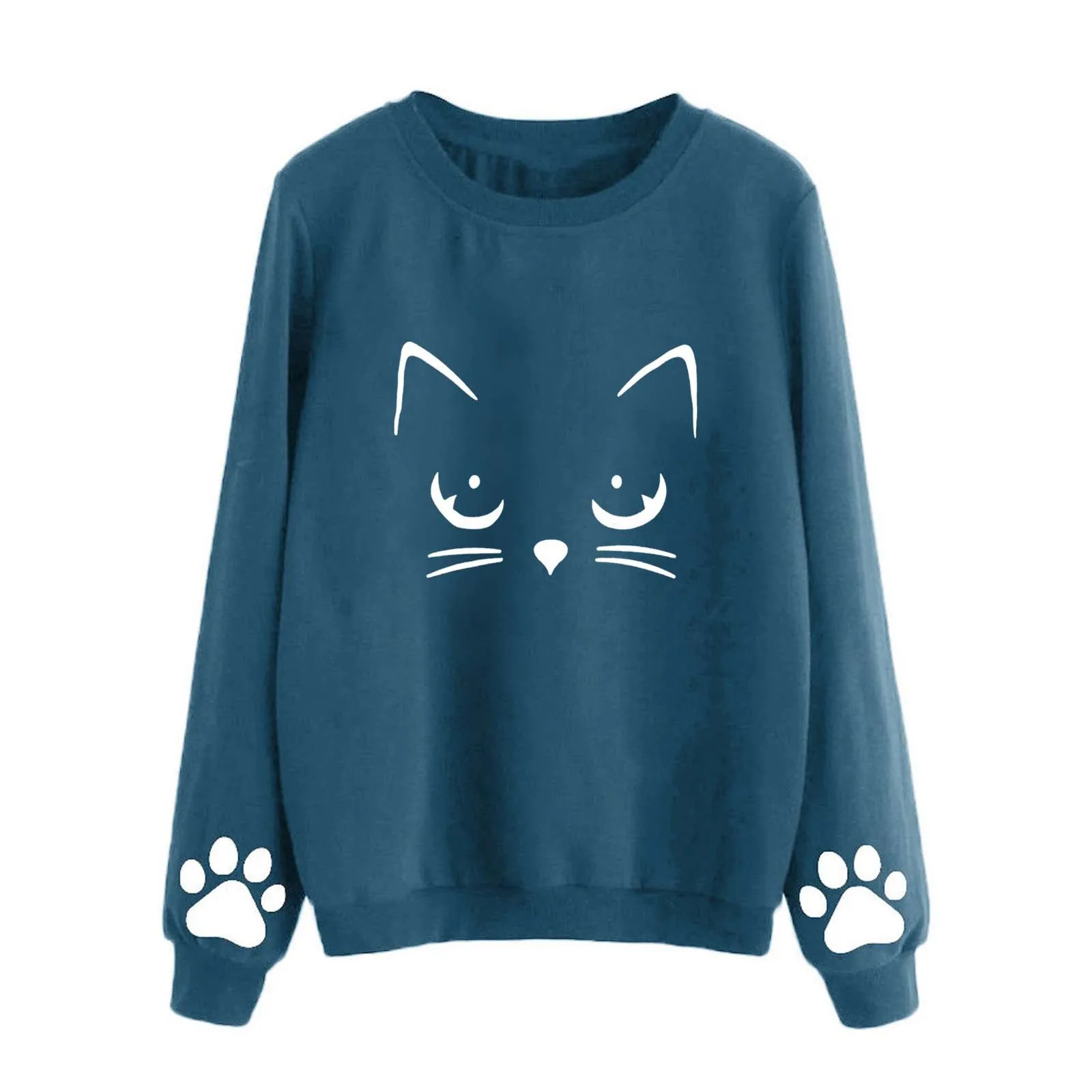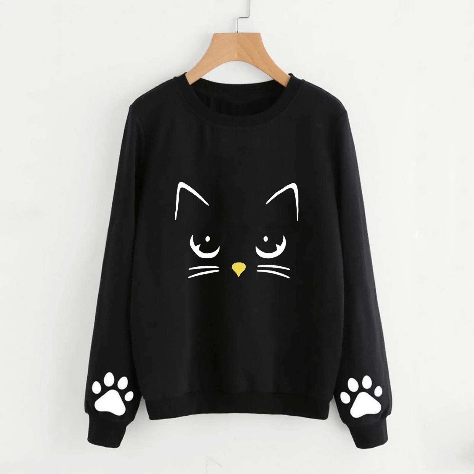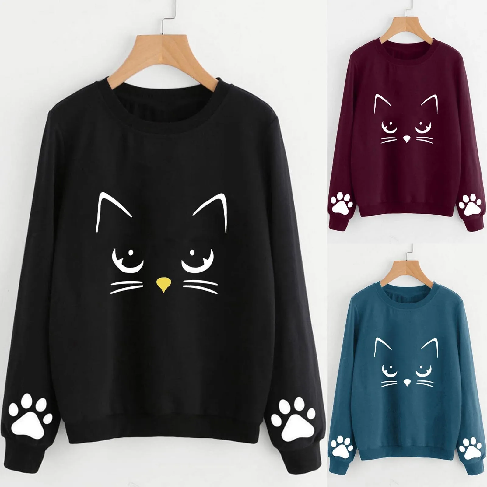 Женский свитшот с принтом кошек, Повседневная Свободная кофта с круглым вырезом и длинным рукавом, #40
