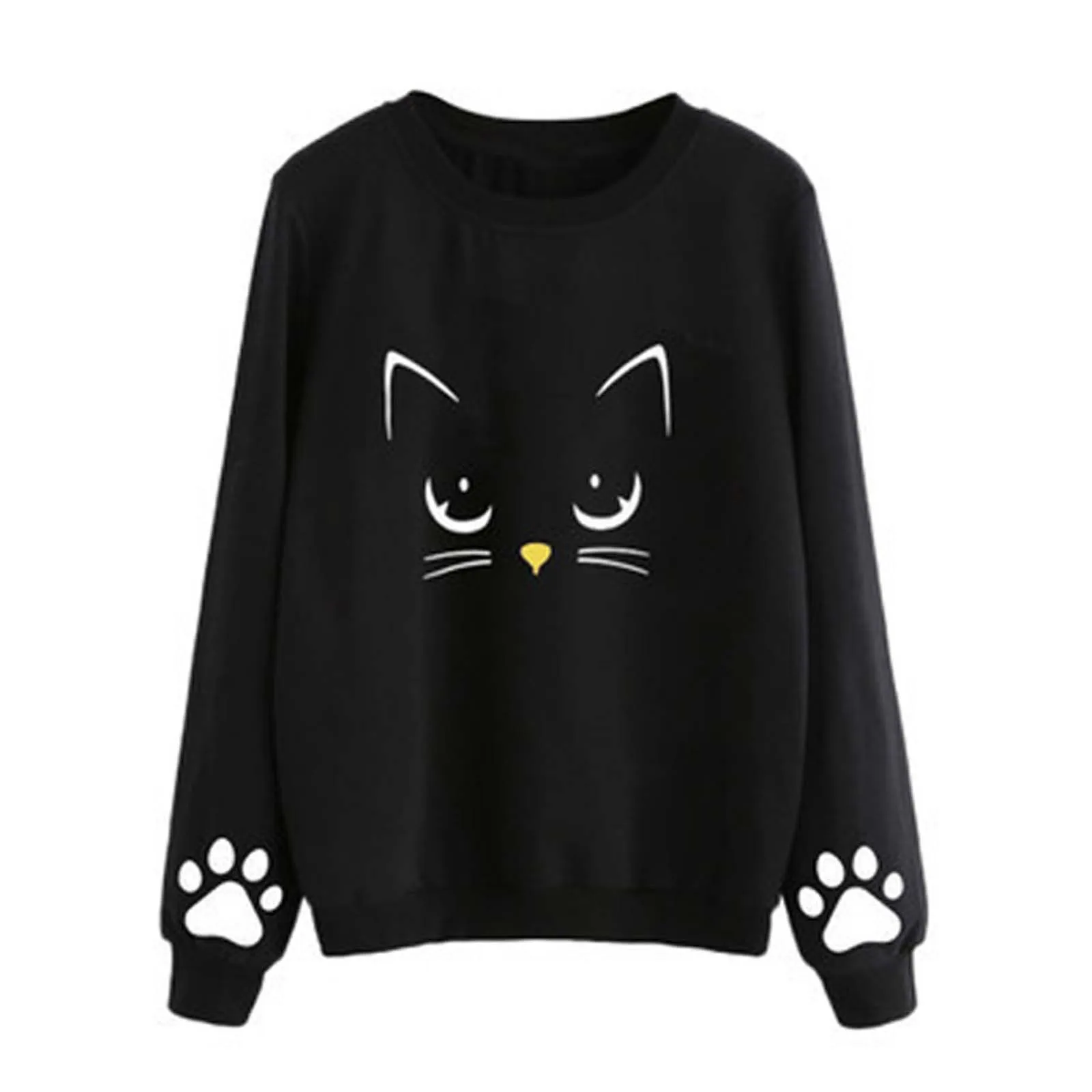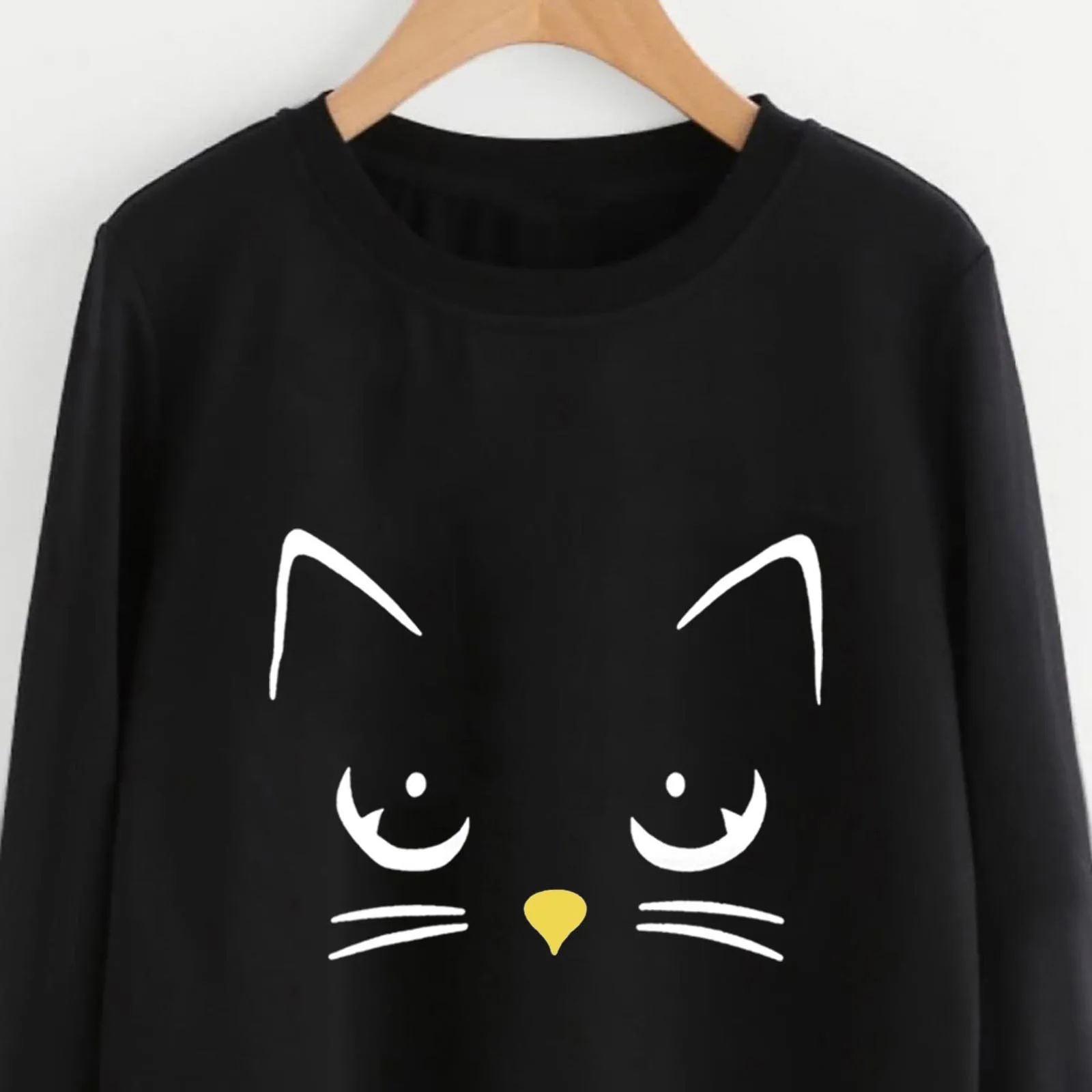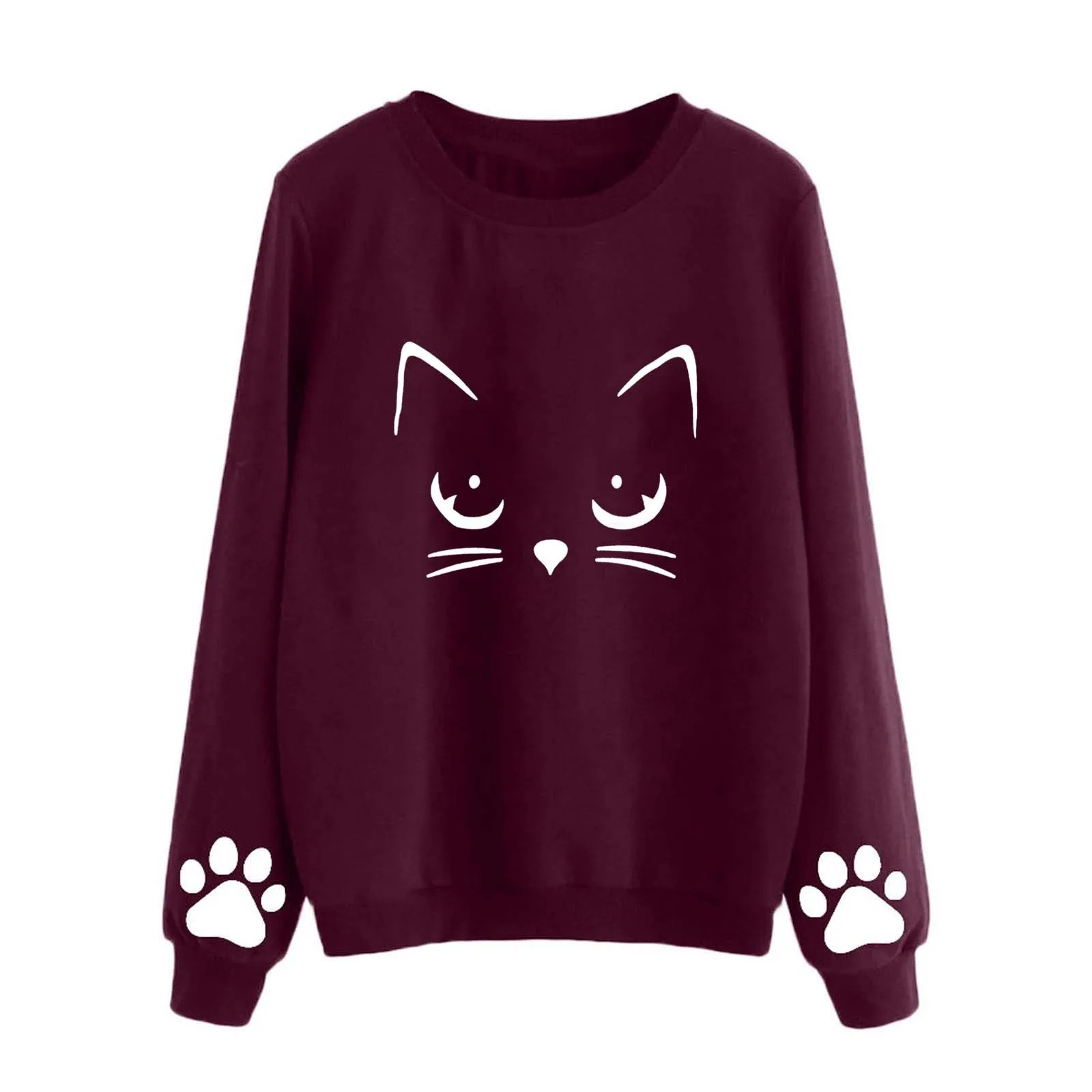 Женский свитшот с принтом кошек, Повседневная Свободная кофта с круглым вырезом и длинным рукавом, #40